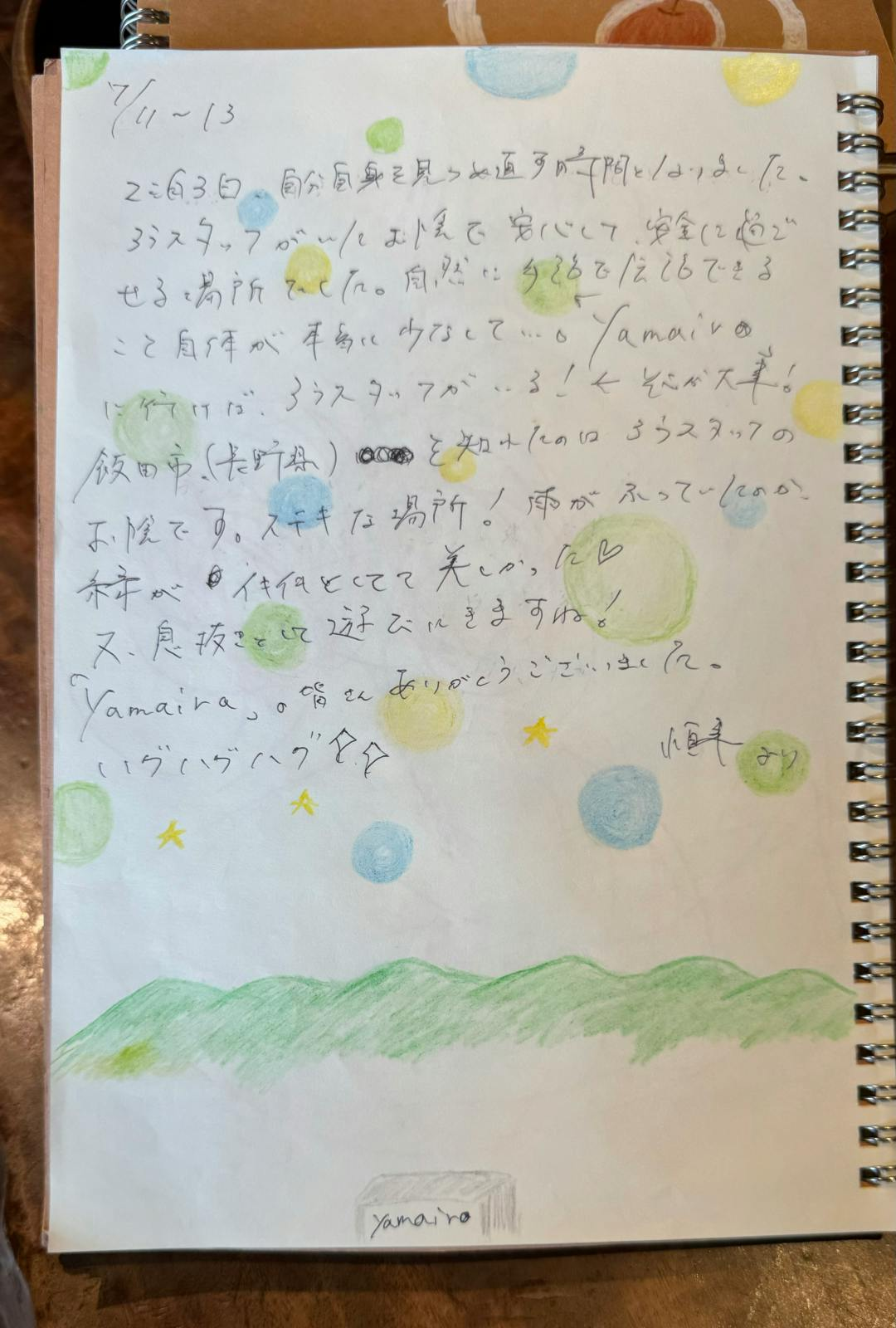 ヤマイロゲストハウスのゲストブックより