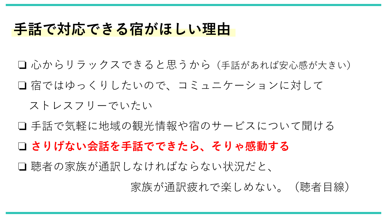 「手話も飛び交う宿」を実現するべく、