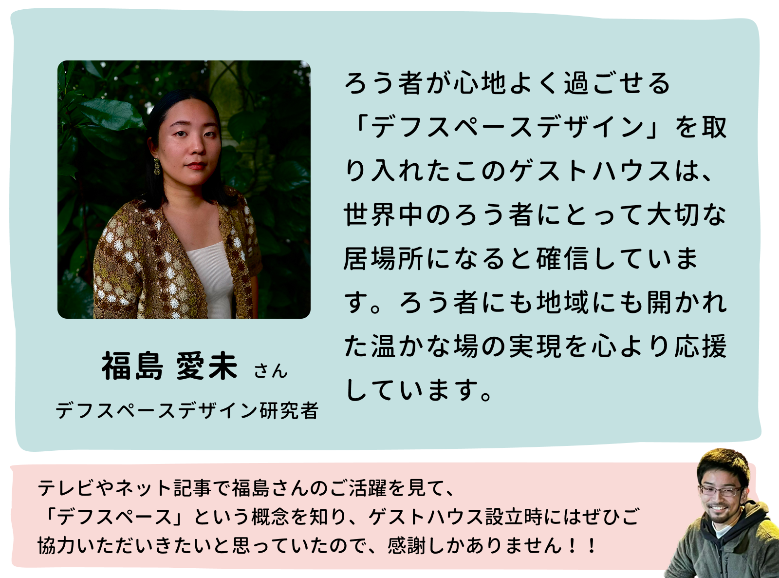 宿の名前はまだ決まっていません。私自身も初めての起業になりますが、手話も飛び交う宿の開業に向けての第一歩をみなさまと共に一緒に踏み出し、創り上げていただけると嬉しいです!