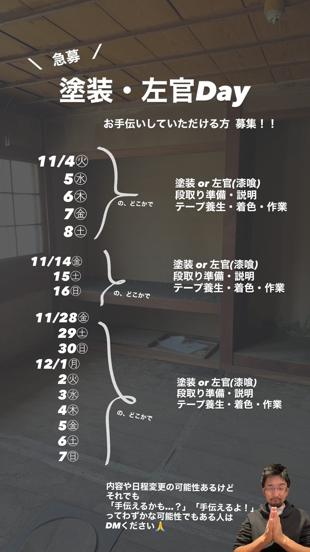 ◉ 塗装・左官作業Day予定日