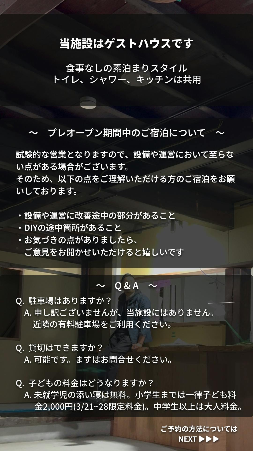 プレオープン期間中につき、以下の事情をご理解の上、ご予約をお願いします。