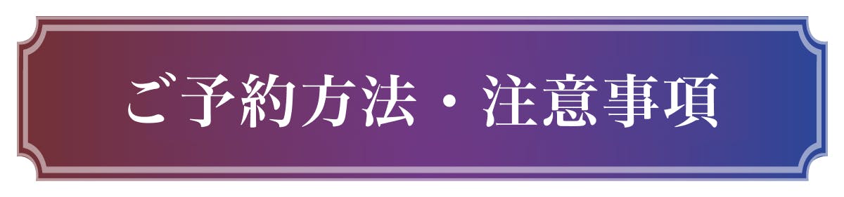 ◆ご予約確定後の内容変更・キャンセルは承っておりません。あらかじめご了承ください。