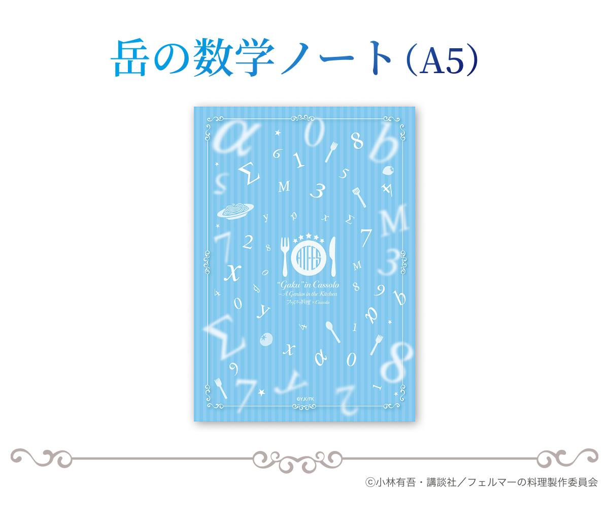 コラボレストランのロゴをあしらったオリジナルノート。ロゴのまわりには数字や記号に紛れて、ナポリタンや苺のモチーフが隠されています。ぜひ、あなただけの“方程式”を解くノートとしてご活用ください!