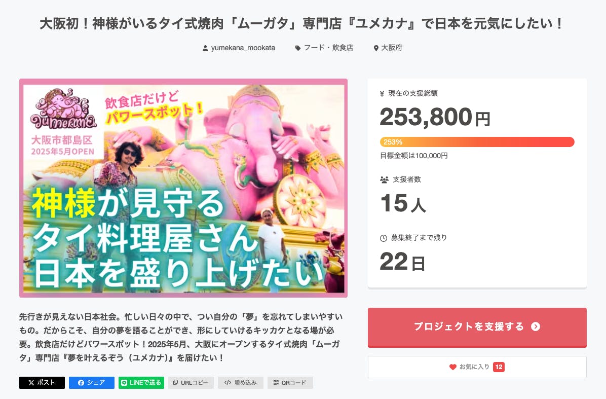 大阪初!神様がいるタイ式焼肉「ムーガタ」専門店『ユメカナ』で日本を元気にしたい!