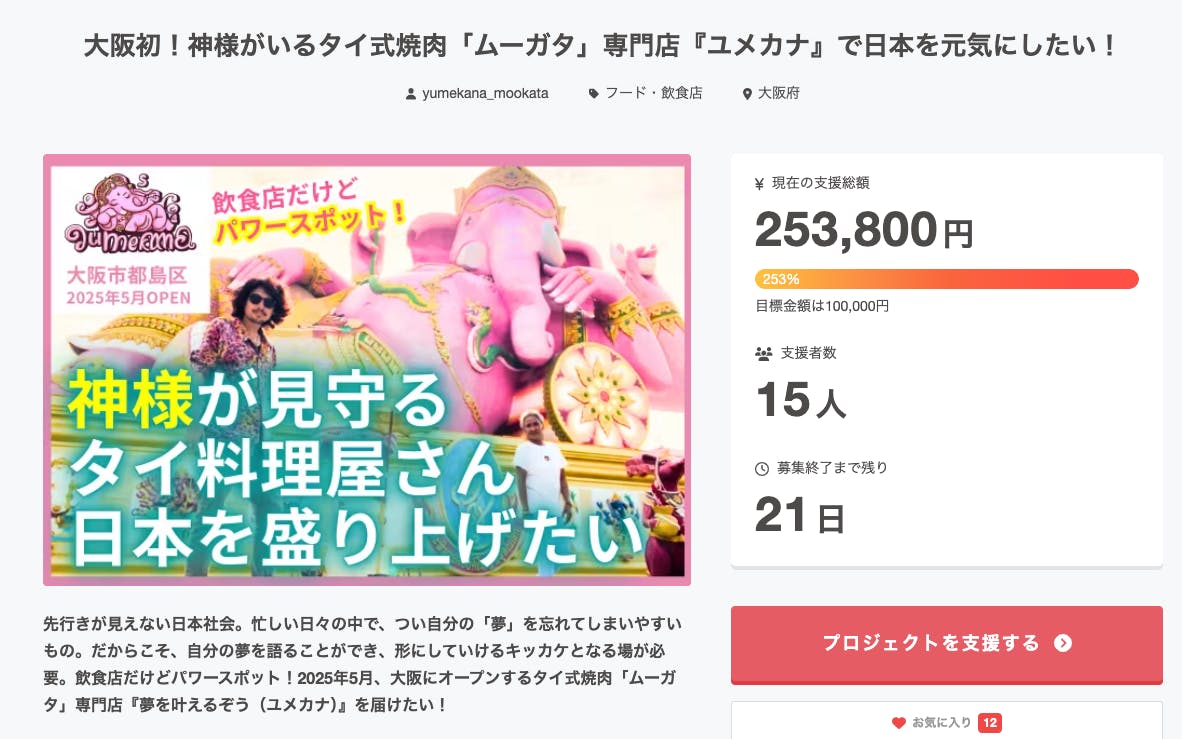 大阪初!神様がいるタイ式焼肉「ムーガタ」専門店『ユメカナ』で日本を元気にしたい!