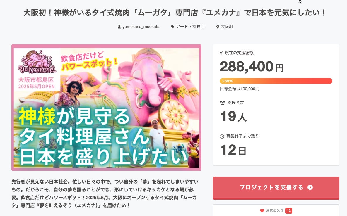 大阪初!神様がいるタイ式焼肉「ムーガタ」専門店『ユメカナ』で日本を元気にしたい!