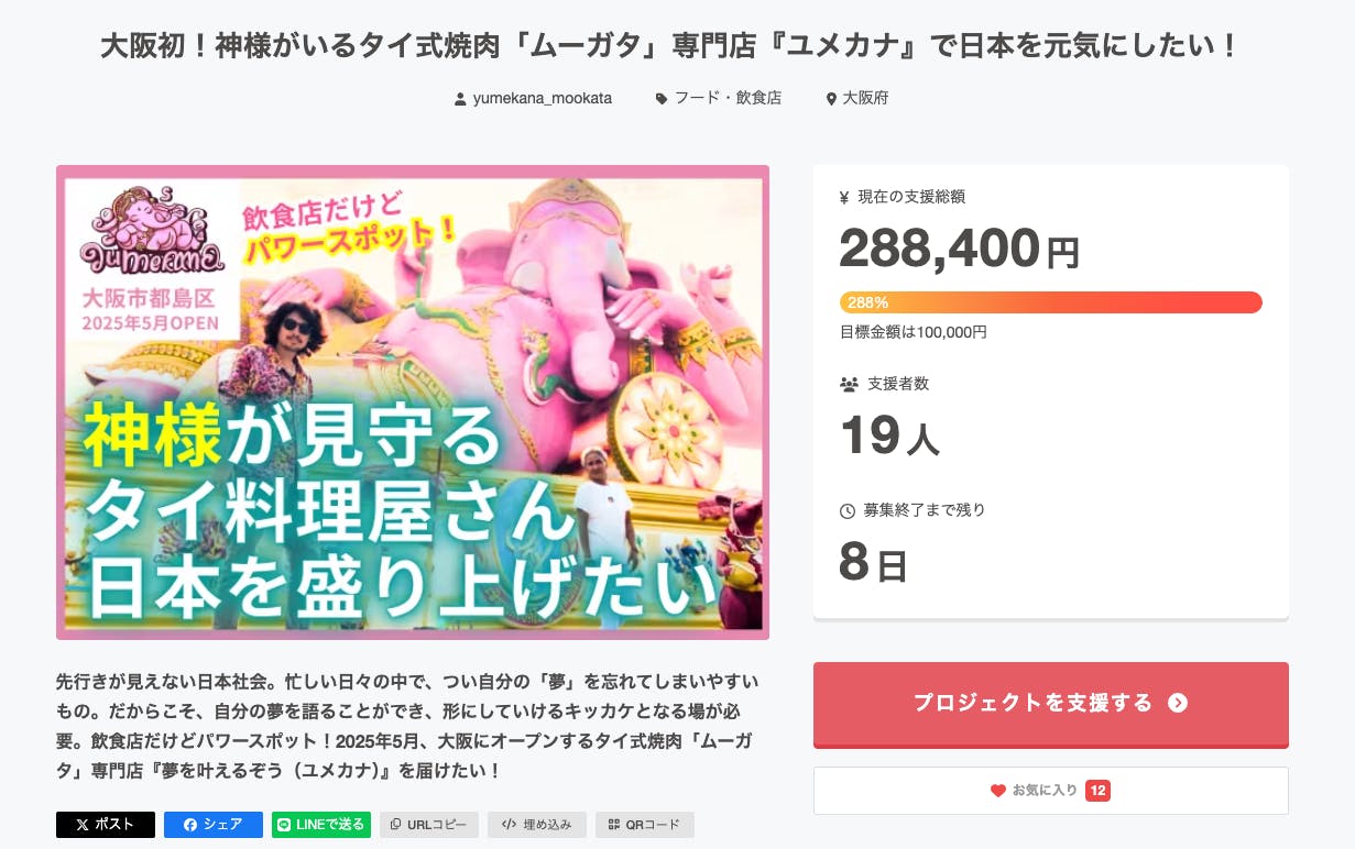 大阪初!神様がいるタイ式焼肉「ムーガタ」専門店『ユメカナ』で日本を元気にしたい!