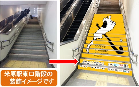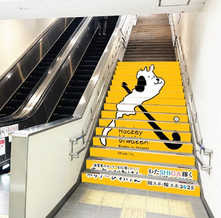 米原駅東口階段の側面を活用してホッケーびわけんのキャラクターで滋賀県のホッケーを多くの方に知ってもらい、興味を高めていただきたく、この構想を実現したいと思います。