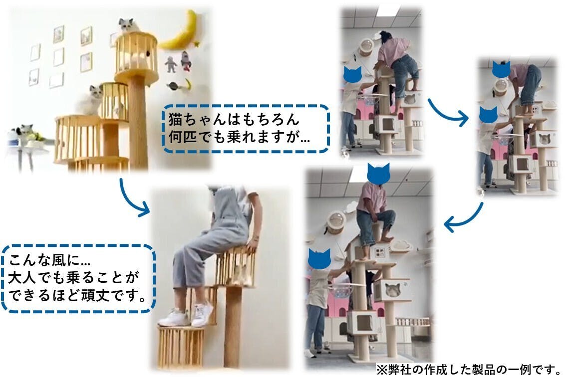 ※上記画像は今回紹介している製品ではありませんが、弊社の作成したキャットタワー製品の一例です。