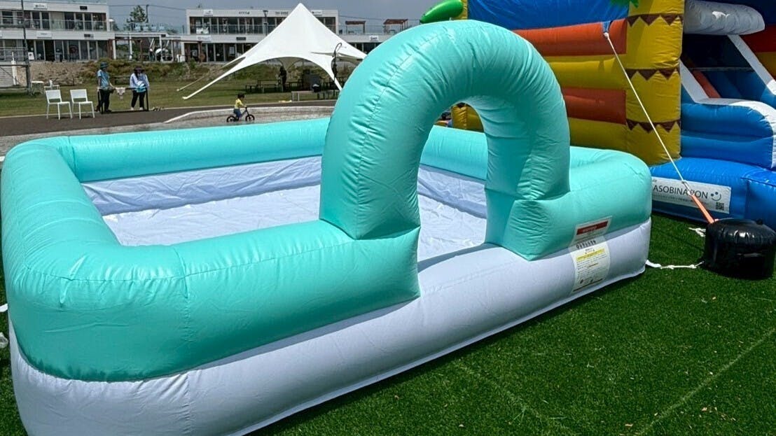 泡、まだ見えませんが、このプールに泡が敷き詰められます。