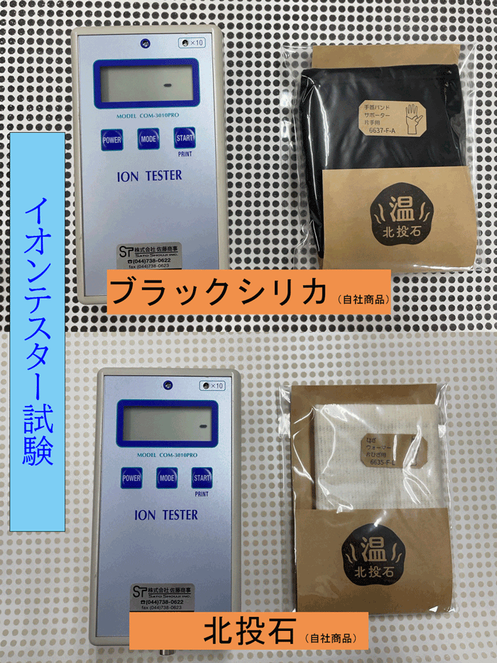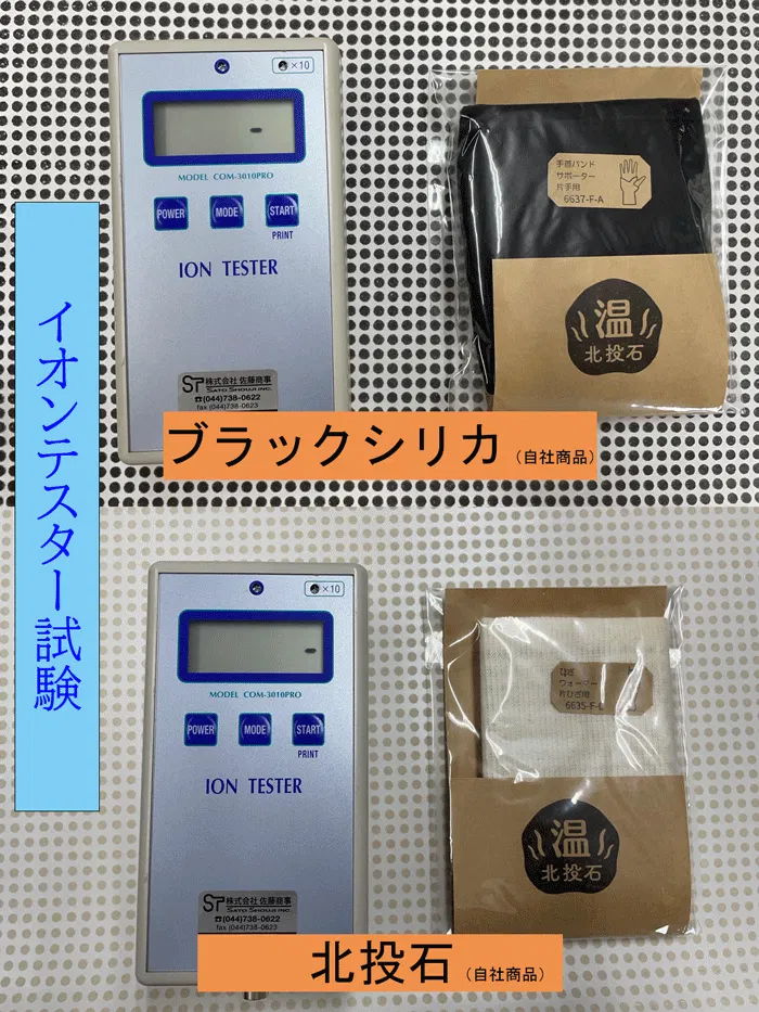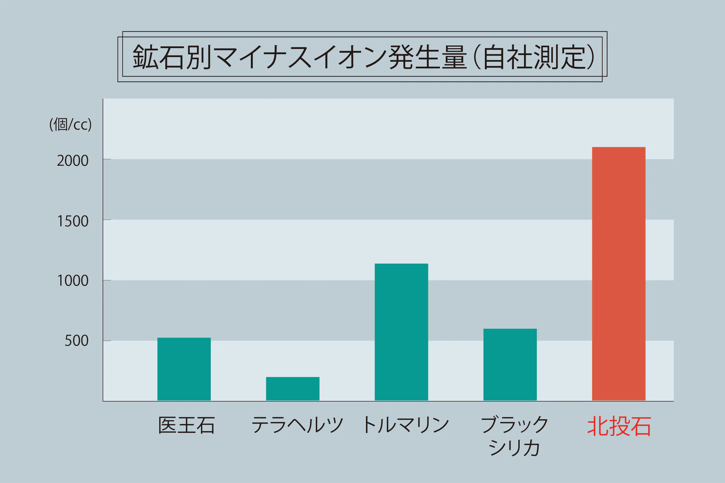 北投石はマイナスイオンを常に発生し続けるという特徴があります。一般的によく知られた鉱石と比べても、その差は一目瞭然!