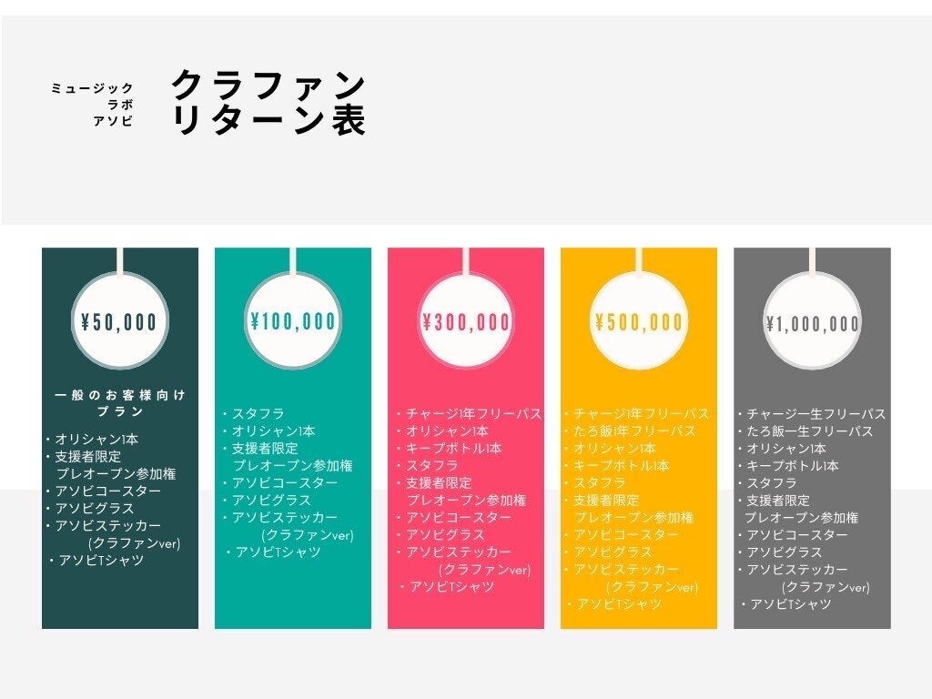リターン品は¥1,000〜¥1,000,000までの11通りをご用意しております。