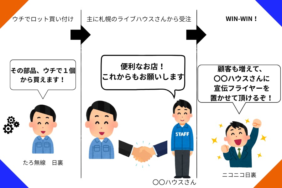 つまり、ライブハウス/DJバーとしての営業の傍ら、機材部品を他のライブハウスさんに小ロットで販売し、さらにつながりも持てる一石三鳥の事業を展開しようと考えています。