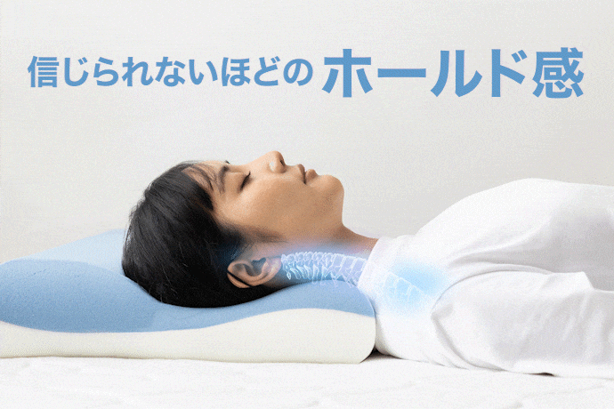 複数のホールドポイントでしっかりと頭部、首、背骨を支え、仰向けでも横向きでも