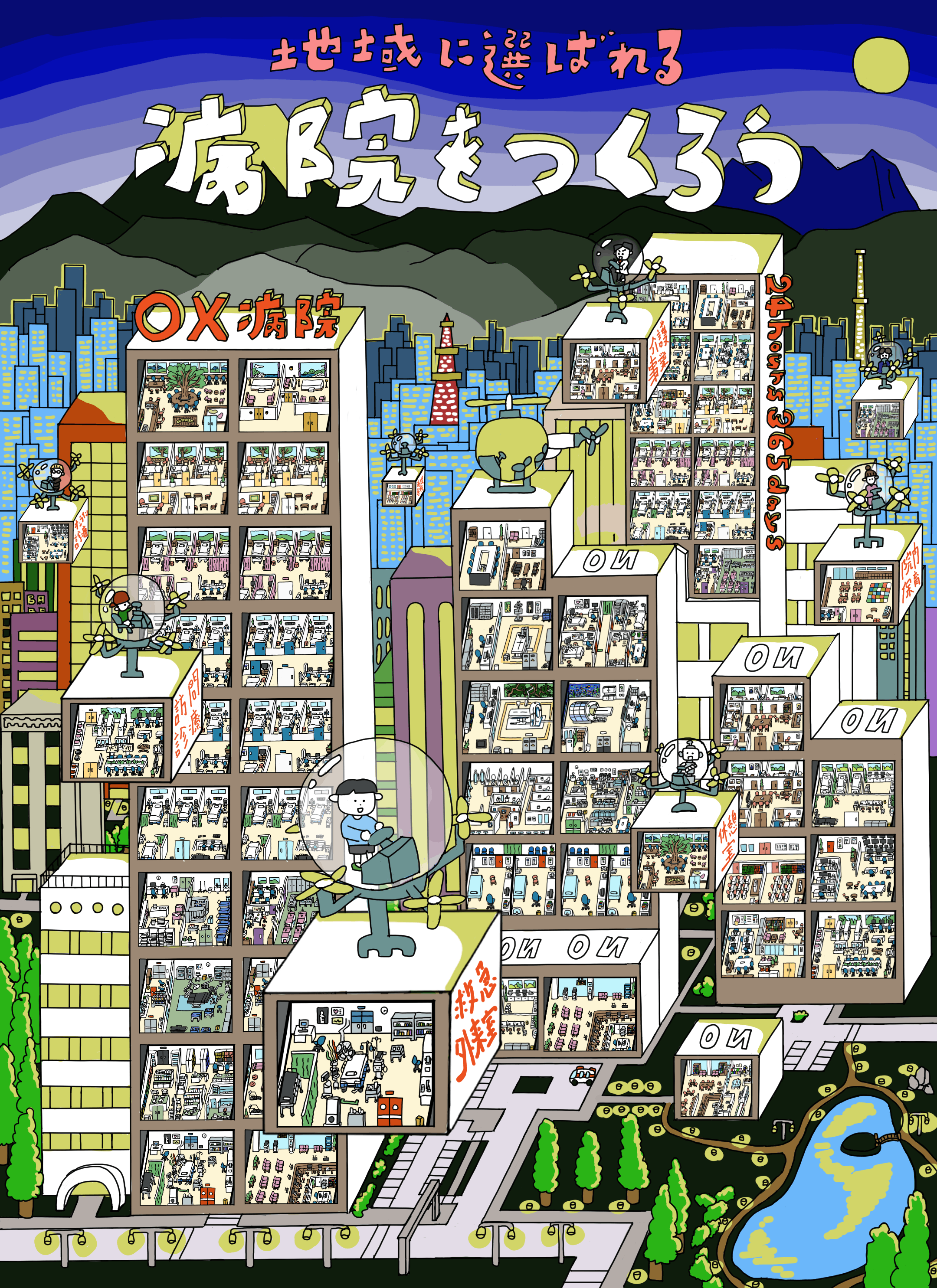 ボードゲーム「病院をつくろう」は、地域住民の声と潜在患者数を把握し、地域に求められる病院を目指し作っていく経営シミュレーションゲームです。遊ぶことを通して、病院が抱える課題やより良い病院になるための工夫、医療機関と人と地域とがどのように関わりあうかなど、プレイヤー個々が自由に発想し、感じ、考える機会を創出する体験型作品となっています。このボードゲームには、実際に医療現場で行われている事柄が多く組み込まれているため、娯楽としてのゲームプレイだけでなく、学生や医療者への教育ツールとしてもご活用いただける可能性を秘めています。ぜひ、様々な活用方法について、場の企画者、そしてプレイヤー同士で意見を交わしていただければ嬉しいです。地域住民のニーズに寄り添い、安心で安全な医療が地域で提供し続けられますことを願っています。神戸翼