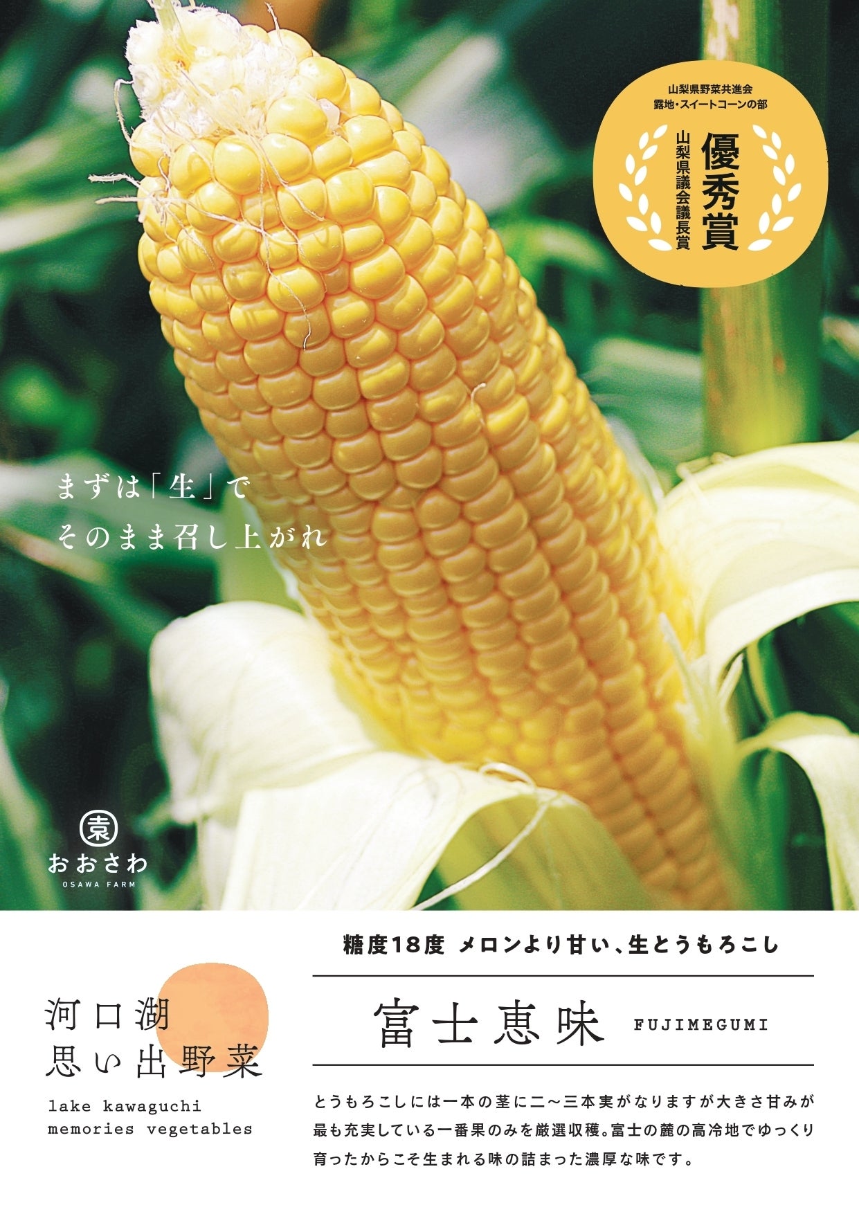 富士恵味とはおおさわ園で育てられているブランドとうもろこしになります。