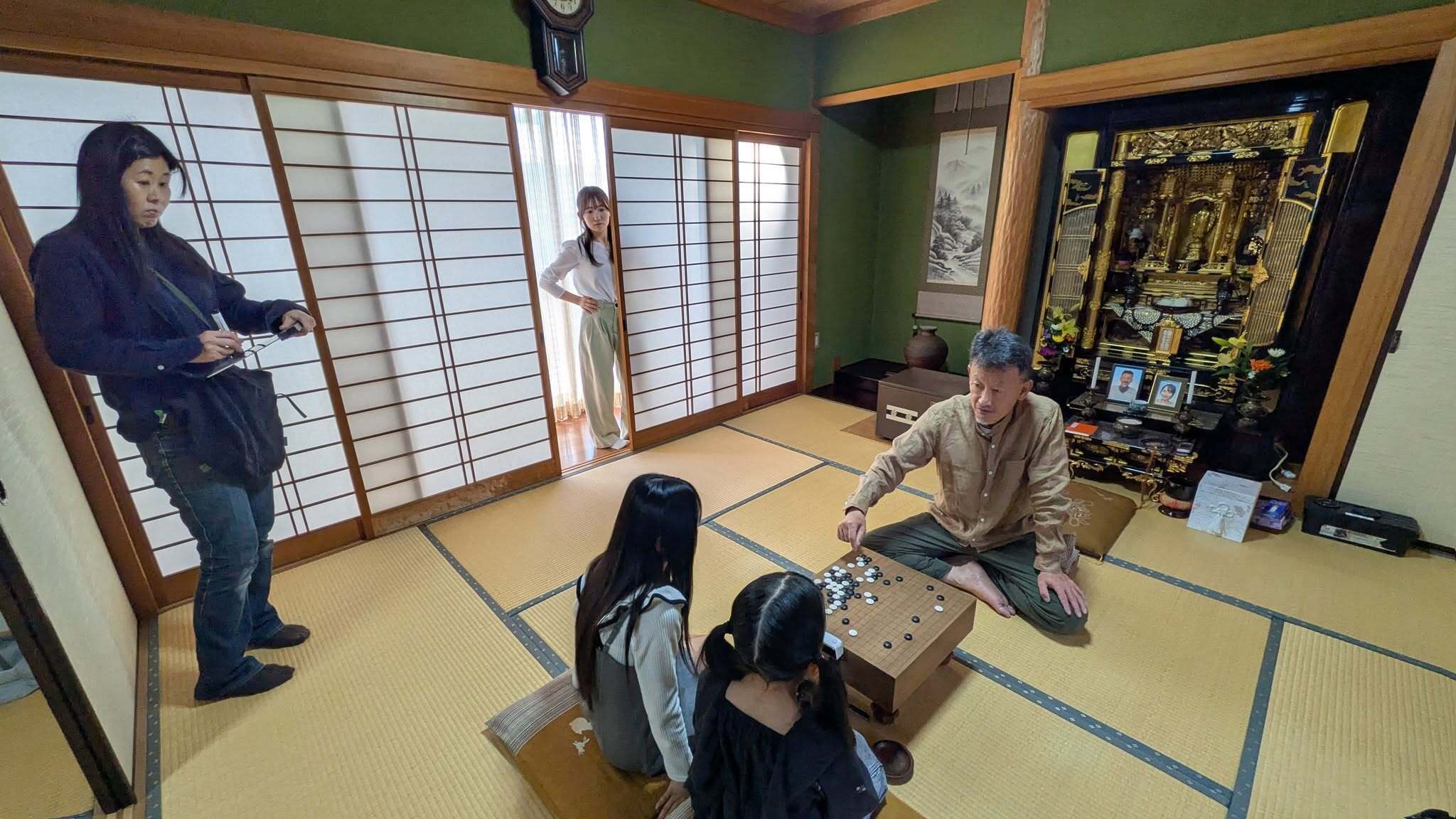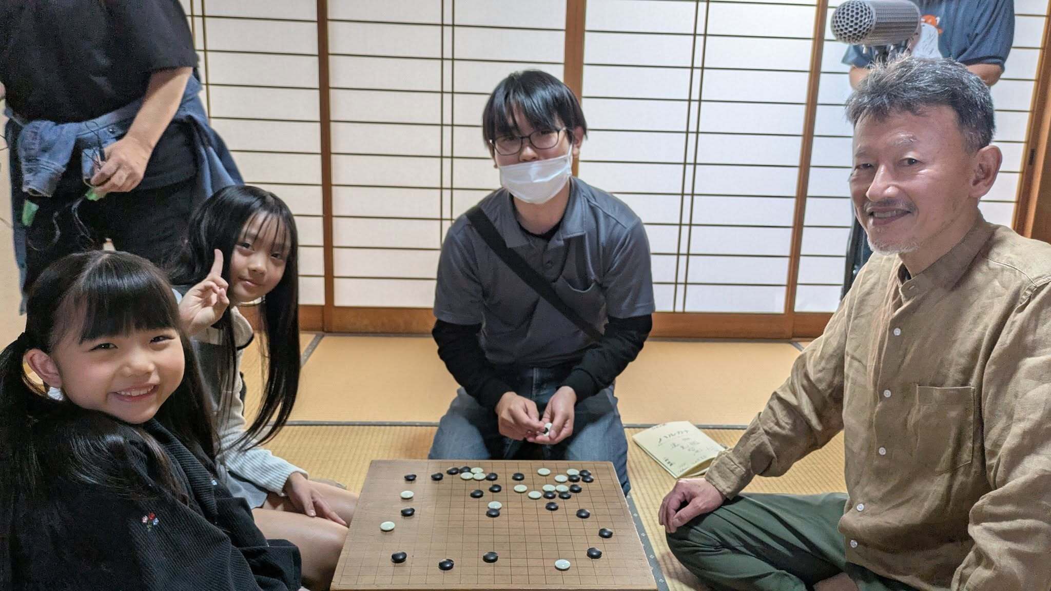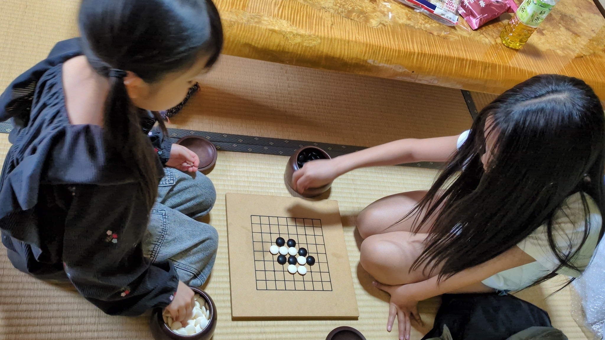 為治おじいちゃんは、二人の孫と囲碁を打っていますが、