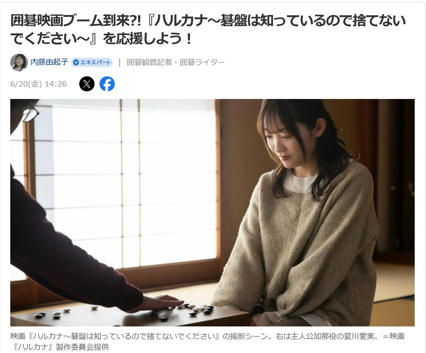 囲碁観戦記者で囲碁ライターの内藤さんにYAHOOニュースに記事を上げていただきました!