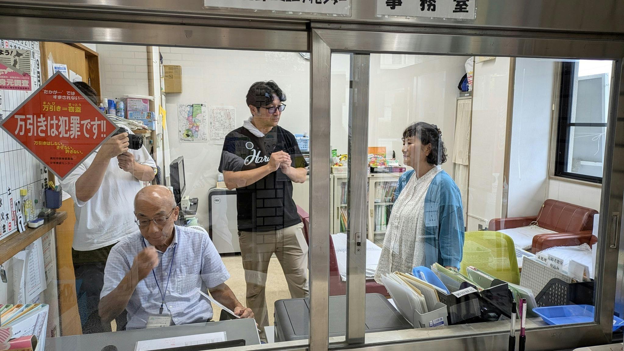 公民館の入り口のシーンでは、ちゃんと、コミニティの事務所を利用させていただきました。