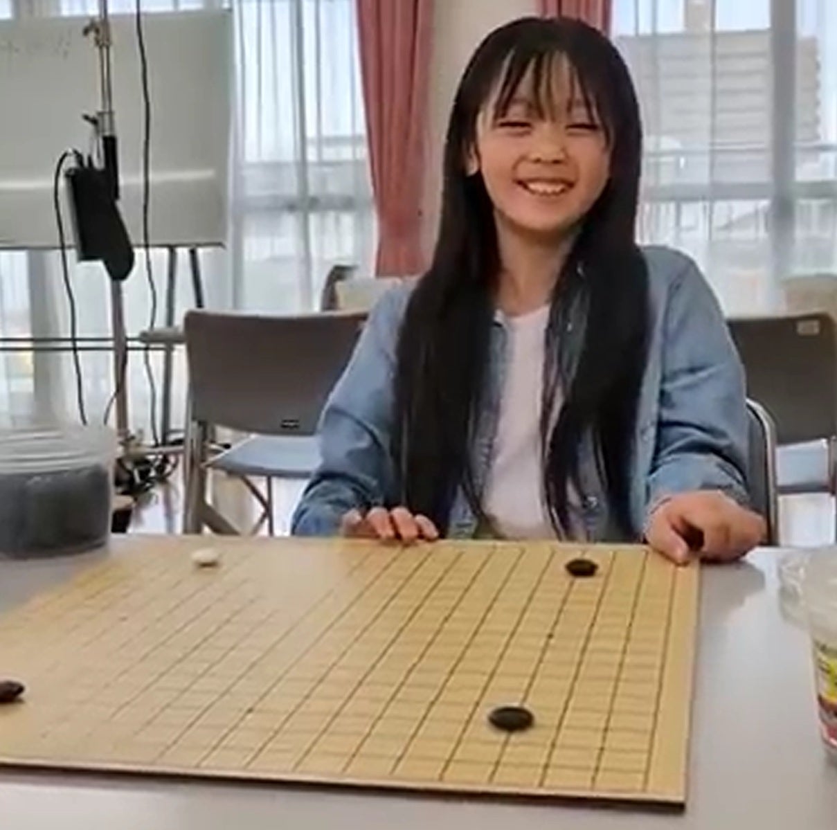 こちらは、菊池菜衣役の林海結ちゃんのタイトルコール!上手に石を持って碁盤に置いていますね!手つきもなかなかのものです!