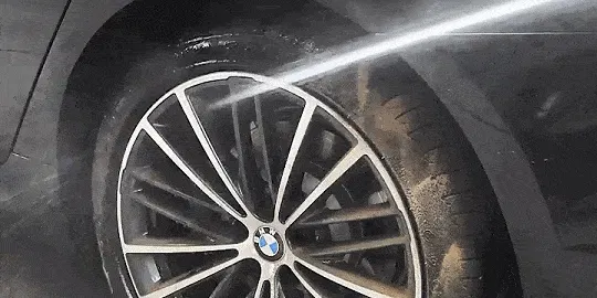 高圧洗浄機ほどの水圧はないですが、洗車に使用するには十分すぎる水圧。タイヤのすき間といった細かい部分についたしつこい汚れもすっきり落とせます。
