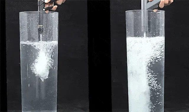 ホース内に流れる水に旋回運動を与えて加速させ、水流は渦を巻きつつ圧力も増していきます。