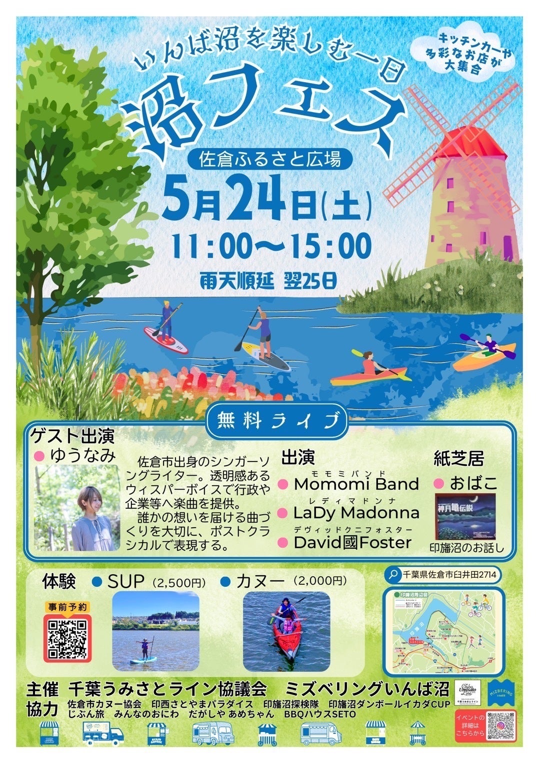 「沼フェス」は、雨天の場合は翌日(5月25日)に順延して開催しますが、翌日も雨天中止となった場合は、止む無くイベント中止とさせていただきます。