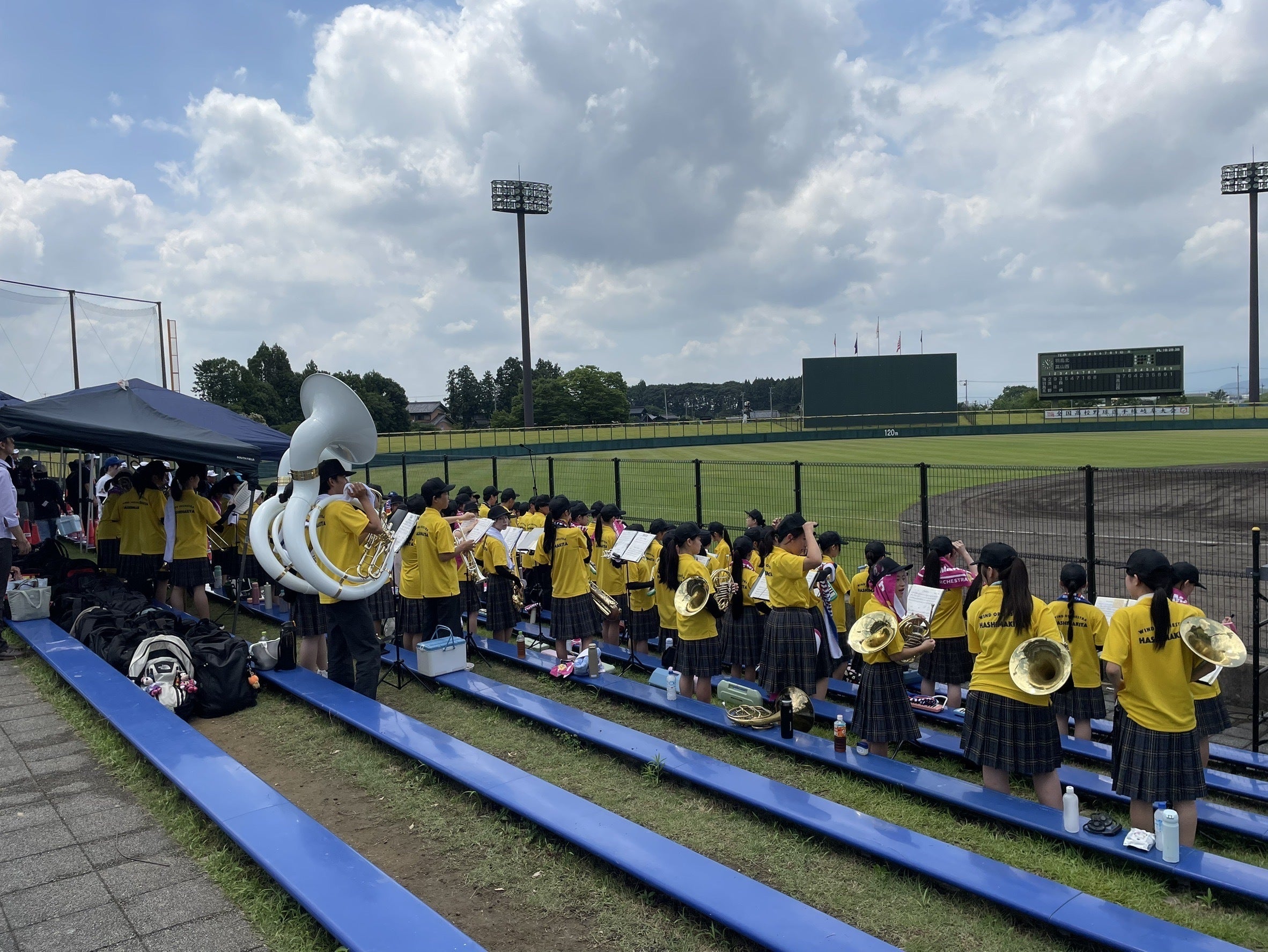 2025/07/20 21:547月13日は、高校野球の応援で大野町のレインボースタジアムに行ってきました!吹奏楽部でもお馴染みのライバル 高山西高校 との対戦ということもあって、自然と応援にも熱が入ってましたよ!木管パート(クラリネット、オーボエ、ファゴットピッコロフルート、コントラバス)の子達は、暑さ•日光•湿気•雨対策として、代打 鍵盤ハーモニカ で出場。試合は残念ながら負けてしまいましたが、暑い中必死で球に食らいついて頑張っている姿を見て大変感動しました!野球部の保護者の皆様には、熱中症にならないよう、テントを張ったりドリンクを用意していただきました。お陰様で無事応援は燃え尽きる⁇ことができました笑。ありがとうございました!もうすぐ、コンクール地区大会本番!毎日の練習にも熱が入っています。 もっと見る