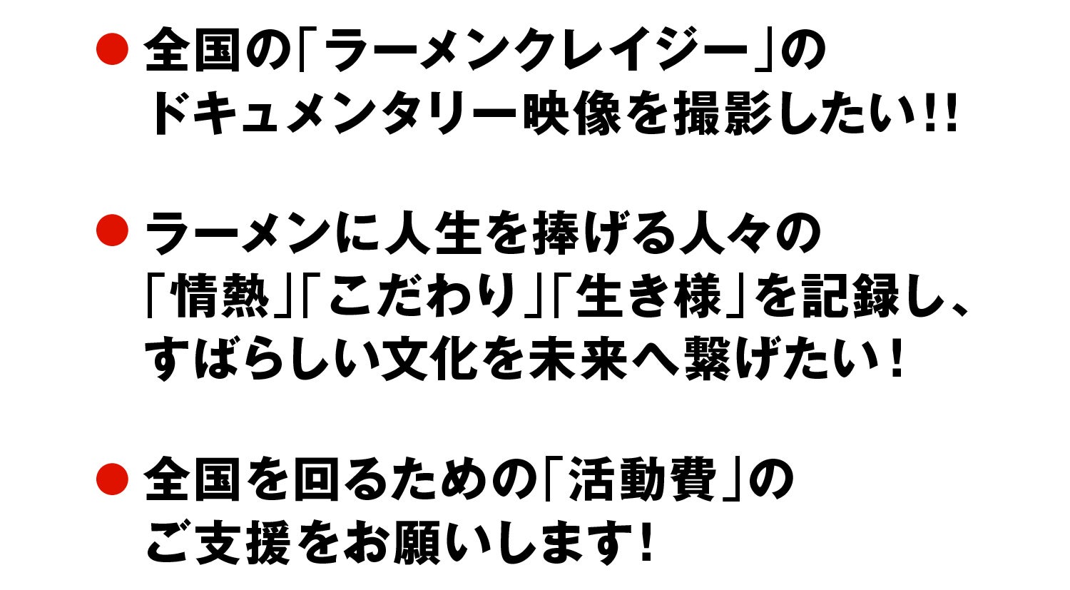 皆さんのご支援が、ラーメン文化を世界中に届けるきっかけとなります。