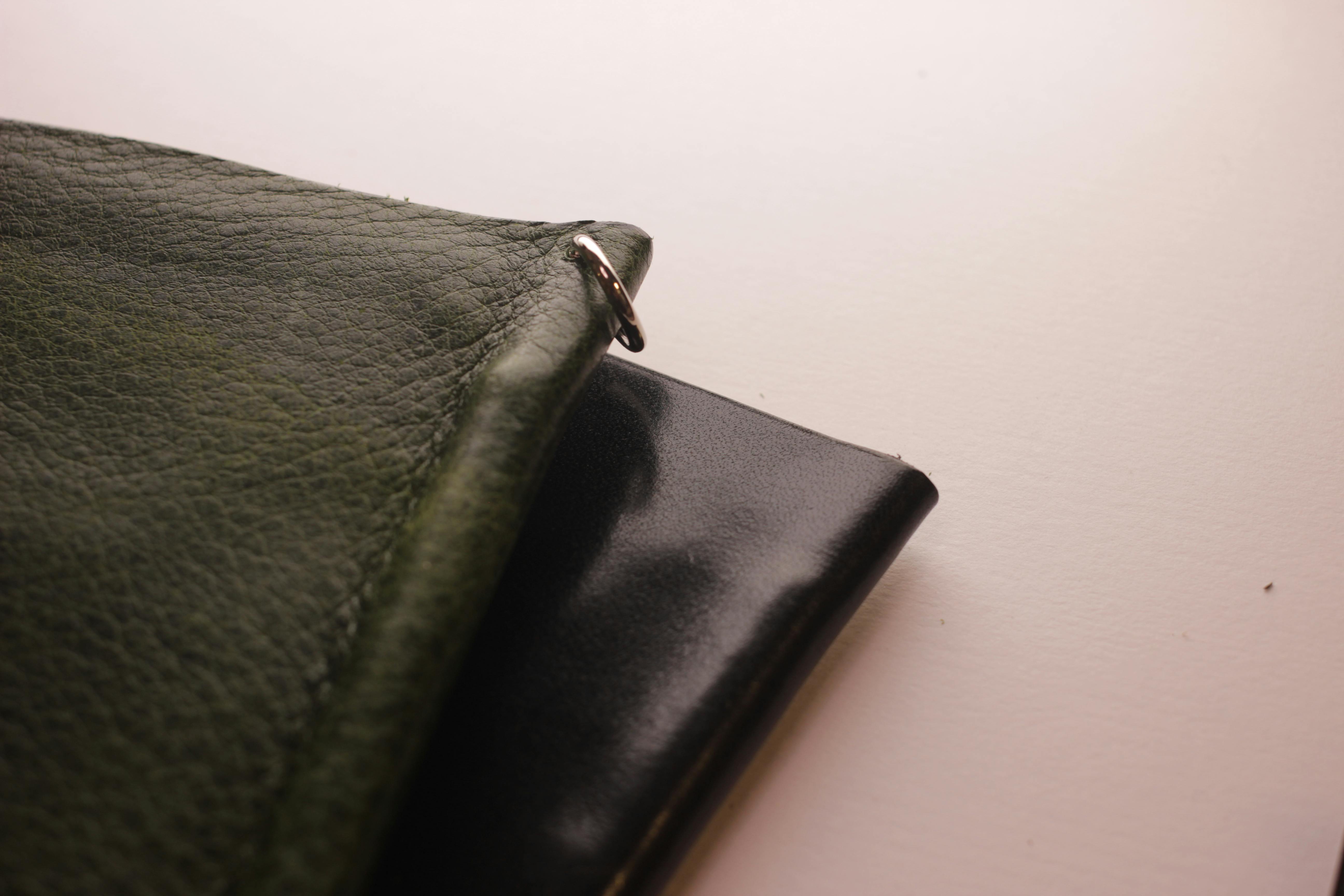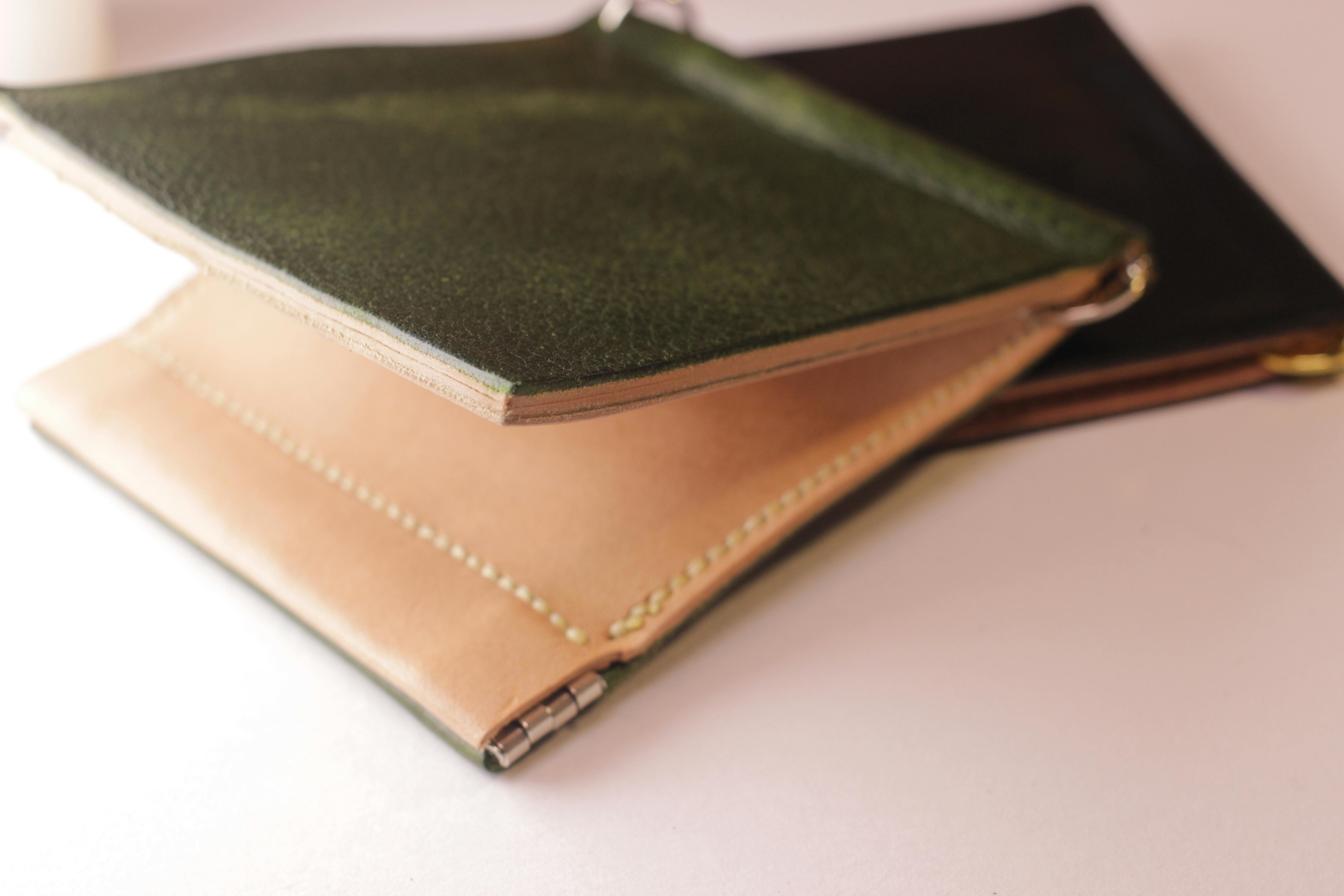 ↪︎折りたたむ内部に金具が無いようにし、レザーと金具が擦れたり、傷つく事を無くしました。