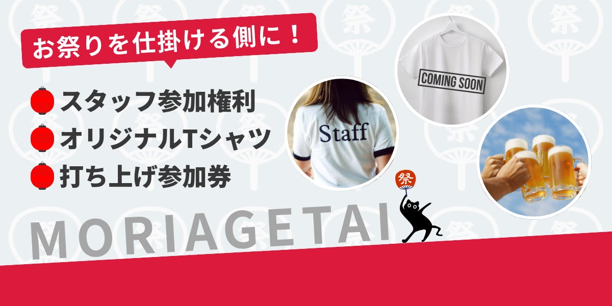 今年の秋は、あなた自身が“祭りの仕掛け人”になってみませんか?企画から運営まで、祭りの舞台裏に一緒に携われる特別な体験。当日は仕掛け人専用のオリジナルTシャツを着て、来場者との交流を楽しみながら、会場に“ホンモノの秋”を届けてください。イベントの裏側を知るワクワク、仲間と創り上げる一体感、終わった後の達成感…。終了後の打ち上げにも参加できるので、さらにメンバーとの親睦を深めることもできます!ここでしか味わえない「特別な一日」を、ぜひあなたの手で作りませんか?