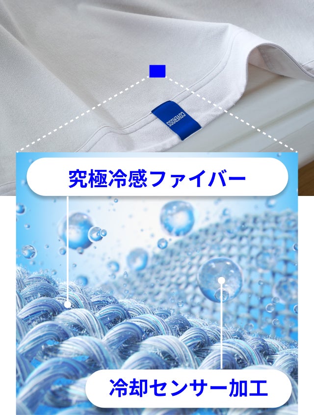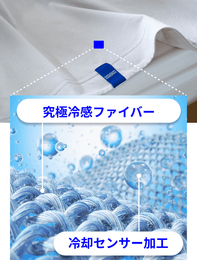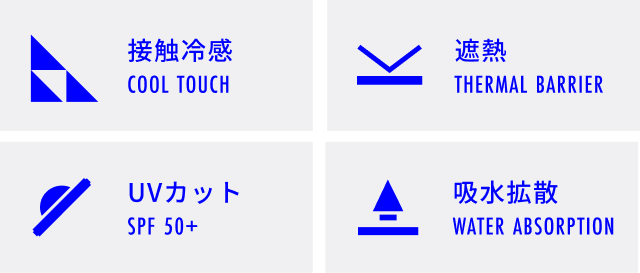 外気を遮熱し、汗・湿気は放出。冷感機能に加え、気化冷却の作用でさらに冷たさを実現。