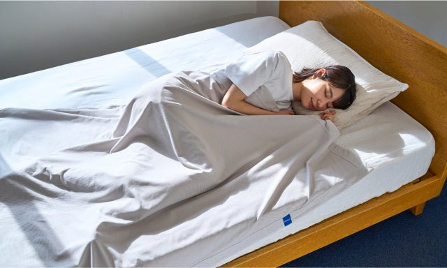 ブランケットして掛けるだけでなく、マットレスの上に敷いたダブル使いで、さらに冷感を高めます。