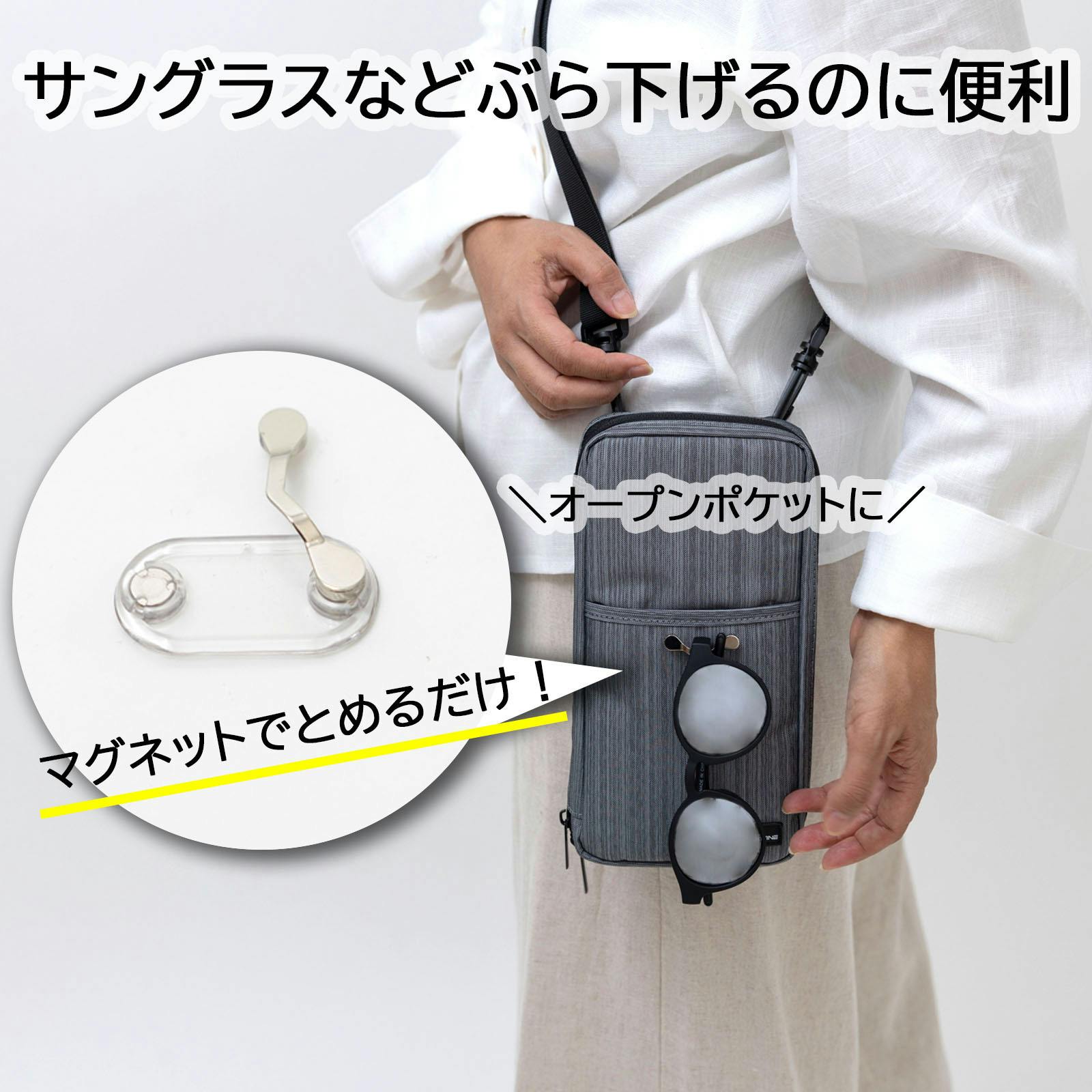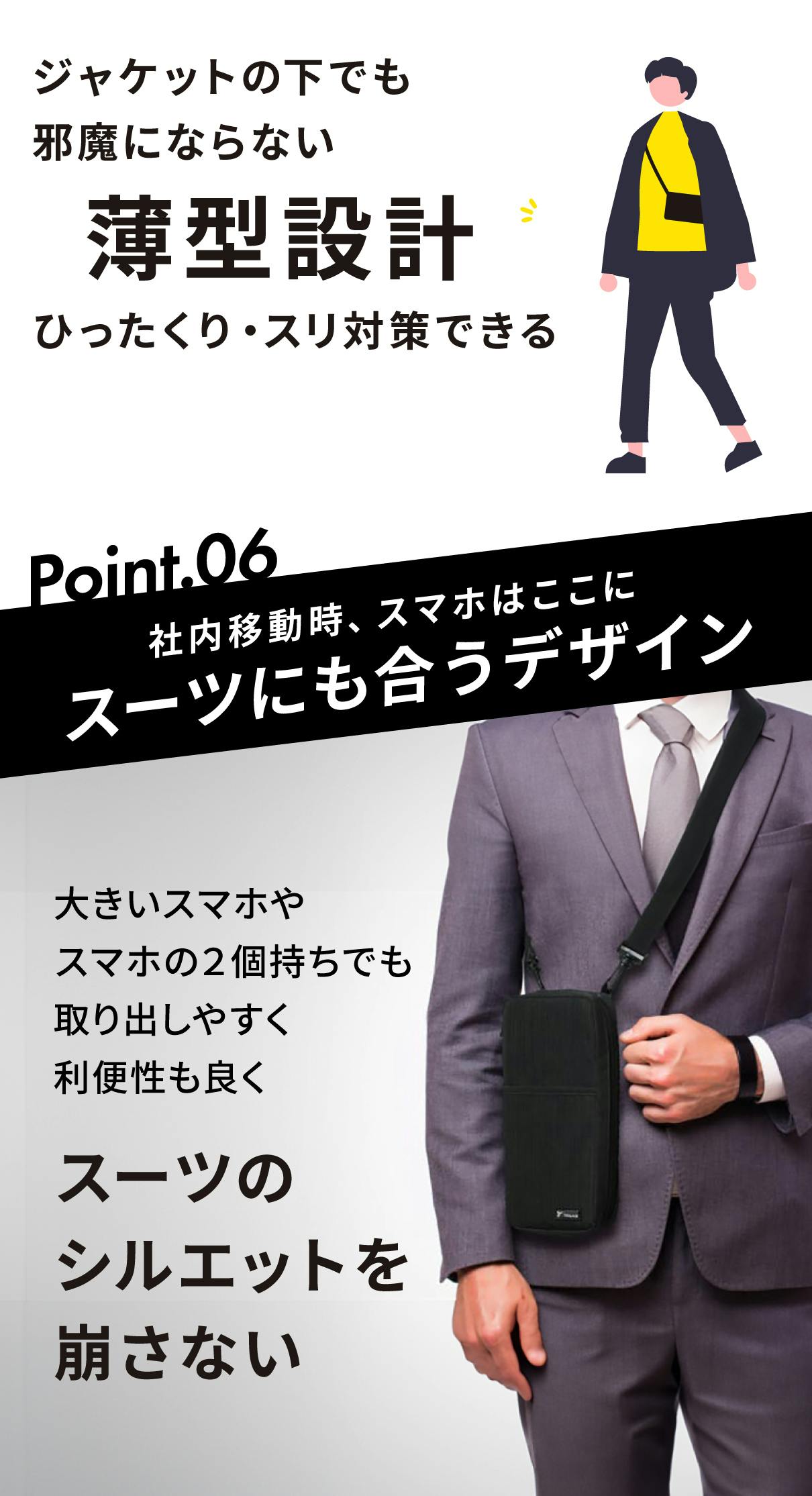 この商品は、「スペインでポケットに入れておいたスマホをすられた!」「国内温泉旅館、浴衣で食堂へ出かけ、写真をとったものの、帰りに机の上にスマホを置き忘れた」「電車の中に充電器を忘れそうになった」などの経験をもとに、スリ被害0、忘れ物0を目指して開発した商品です。安全に貴重品を持ち運び、ストレスなく旅行が楽しめるように、いろいろな方の経験談を聞きながら開発しました。
