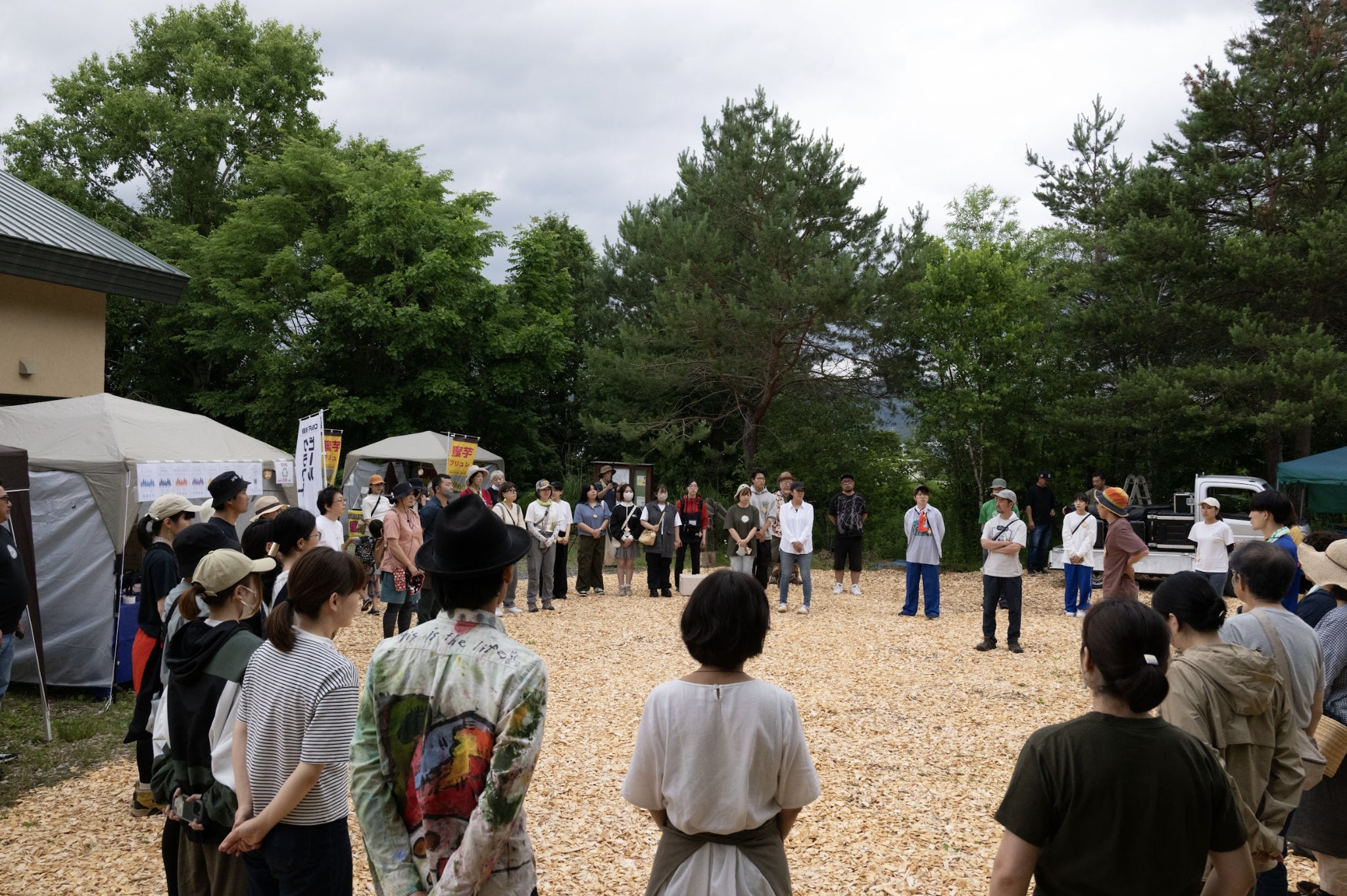◼️2014年インテリア雑貨とカフェの週末マーケット「LOPPIS」の下川開催が持ち上がったのをきっかけに、EZOCUPに隣接する会場で同日開催のイベントが多数企画されました。美桑が丘の森を中心に企画されたこれらのイベントは、みんなで混ざり合って良い音色を出そうという意味で、森のジャムセッション=「森ジャム」と名付けられました。