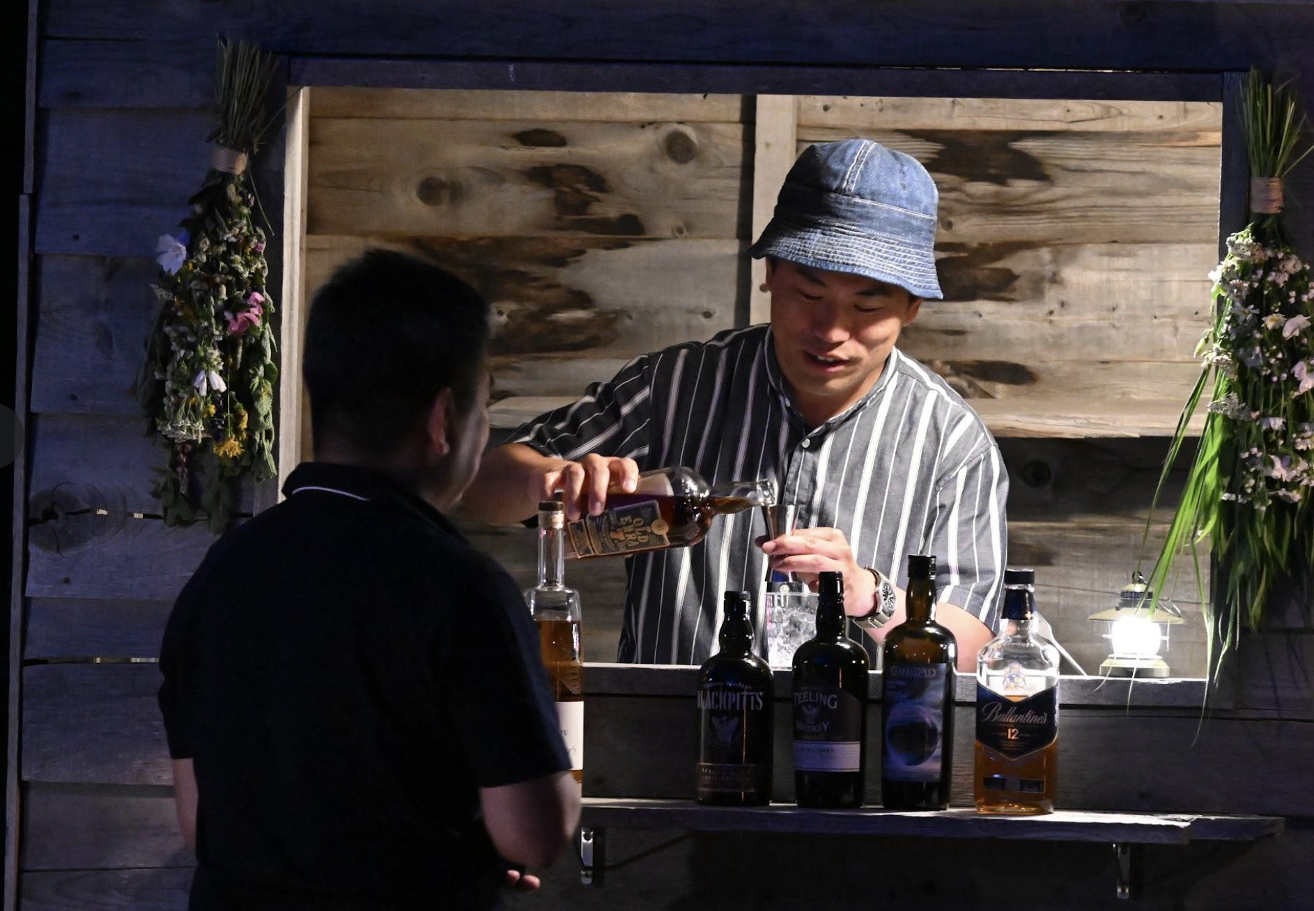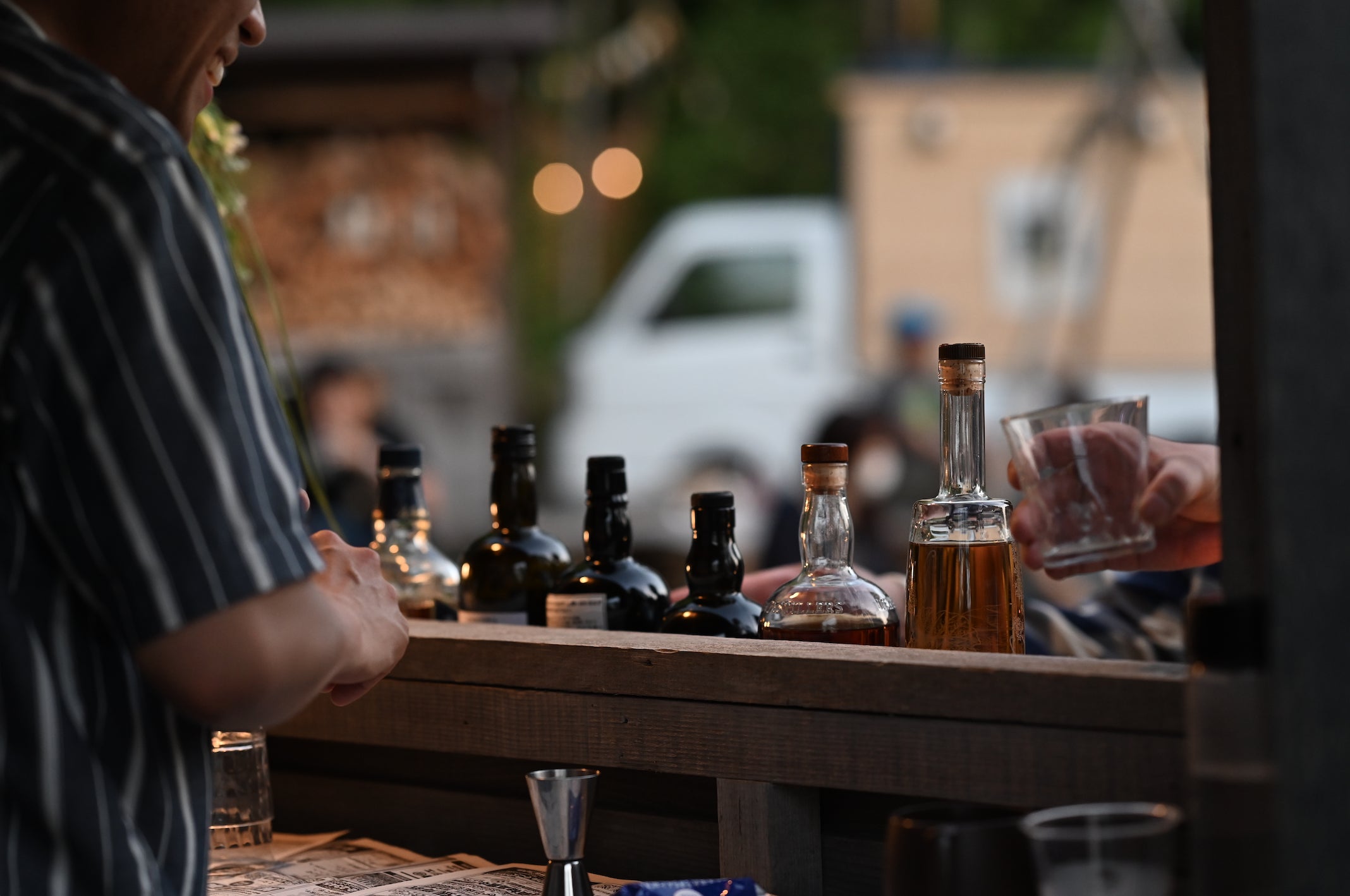 店主選りすぐりの世界のウイスキーが楽しめる野外バー。