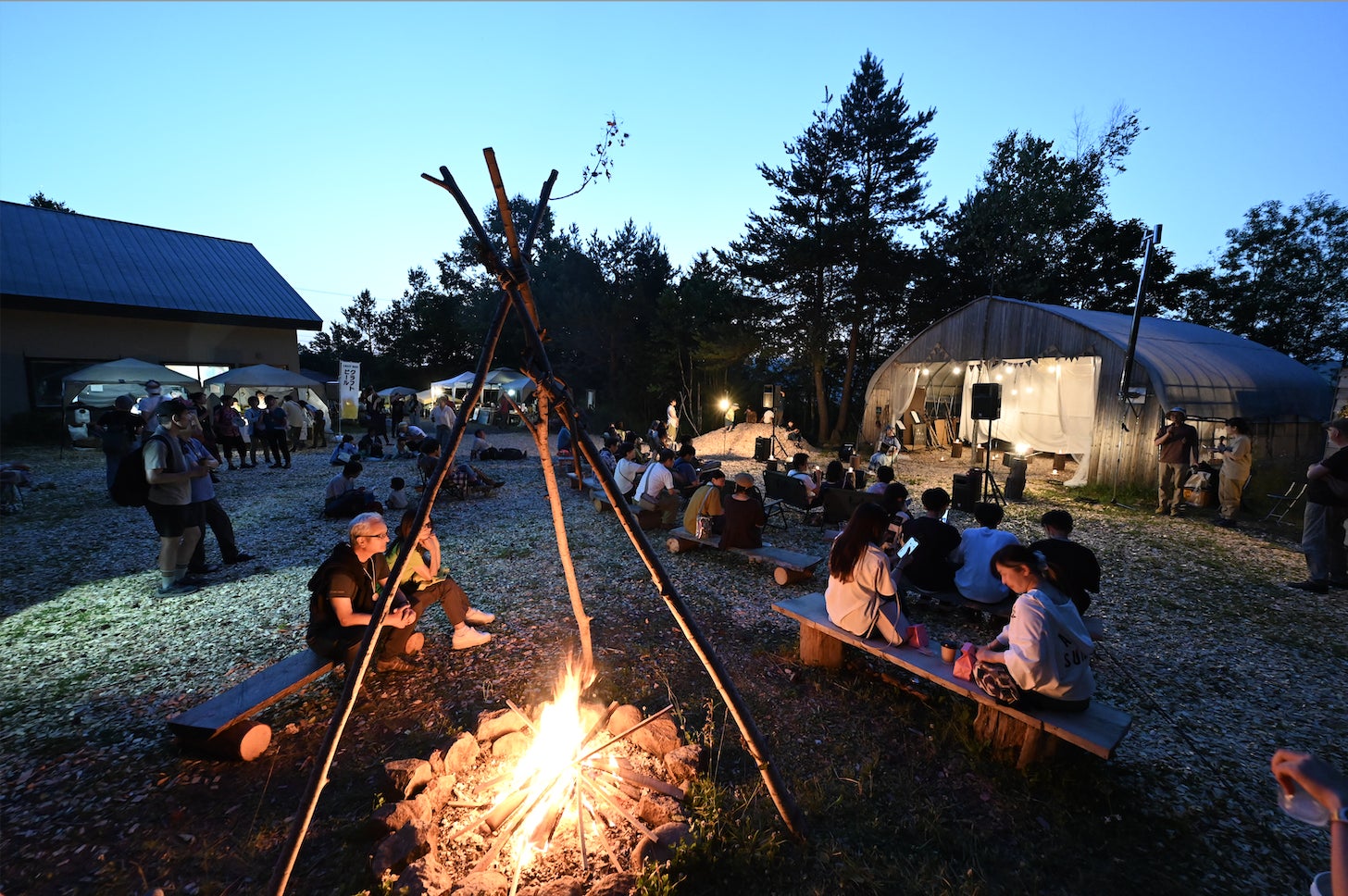 会場そばの桜ヶ丘公園がテントサイトとして開放されます。町内の宿泊施設が埋まっていても、音楽と星空のバルで遅くまで楽しんでテントでの宿泊が可能です。