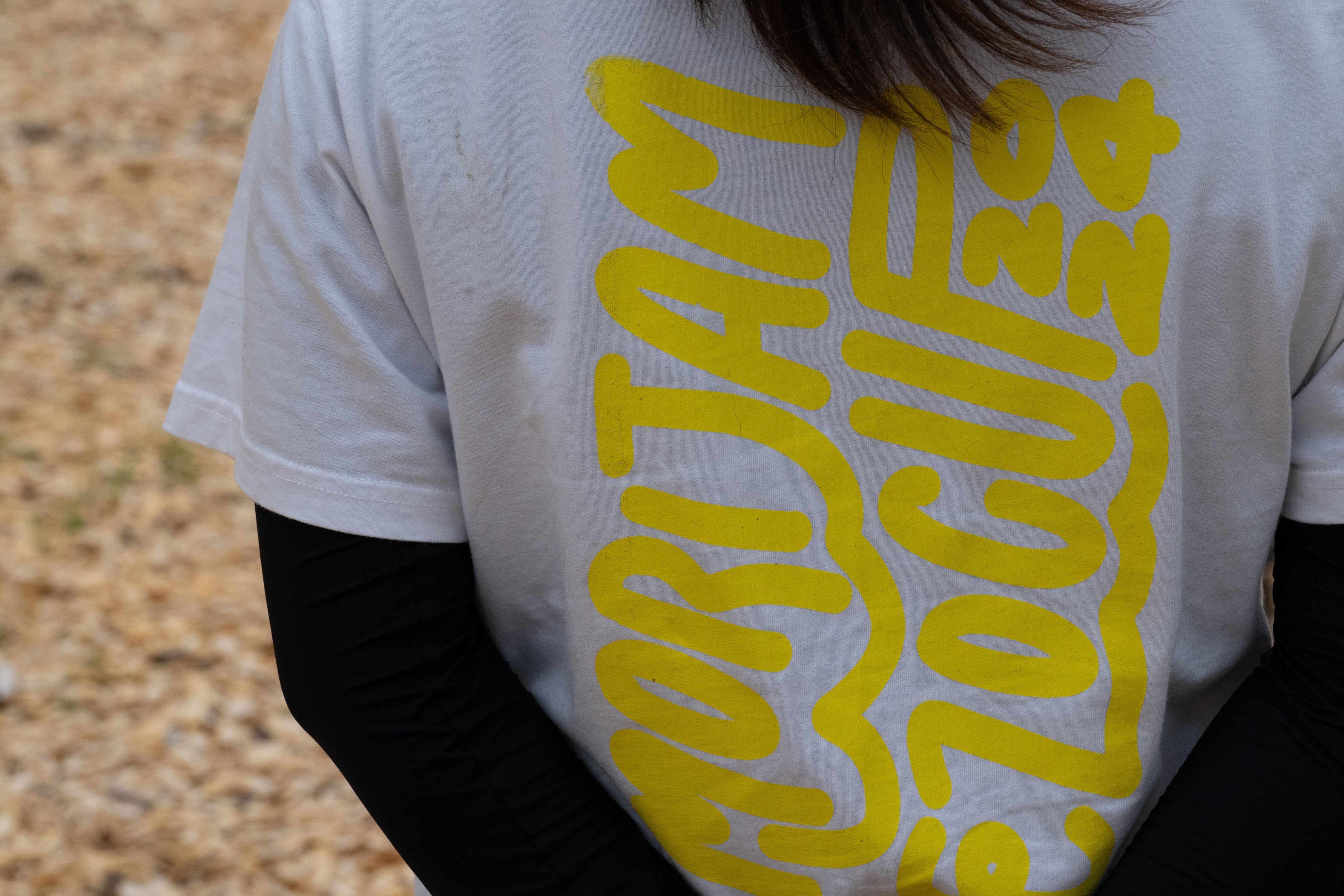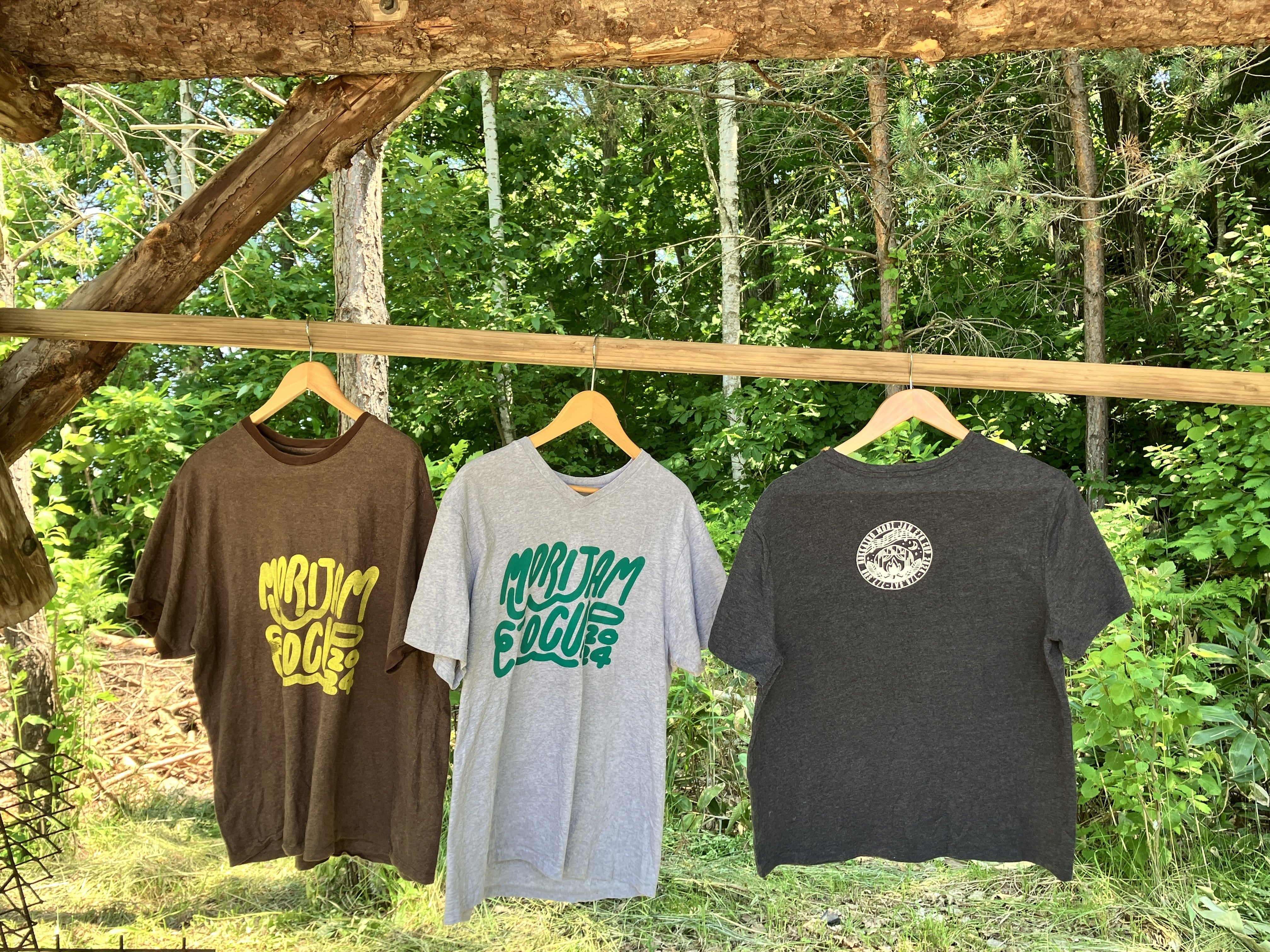 森ジャム2025のロゴデザインを実行委員が1枚1枚丁寧に、シルクスクリーンで印刷したTシャツを提供します。