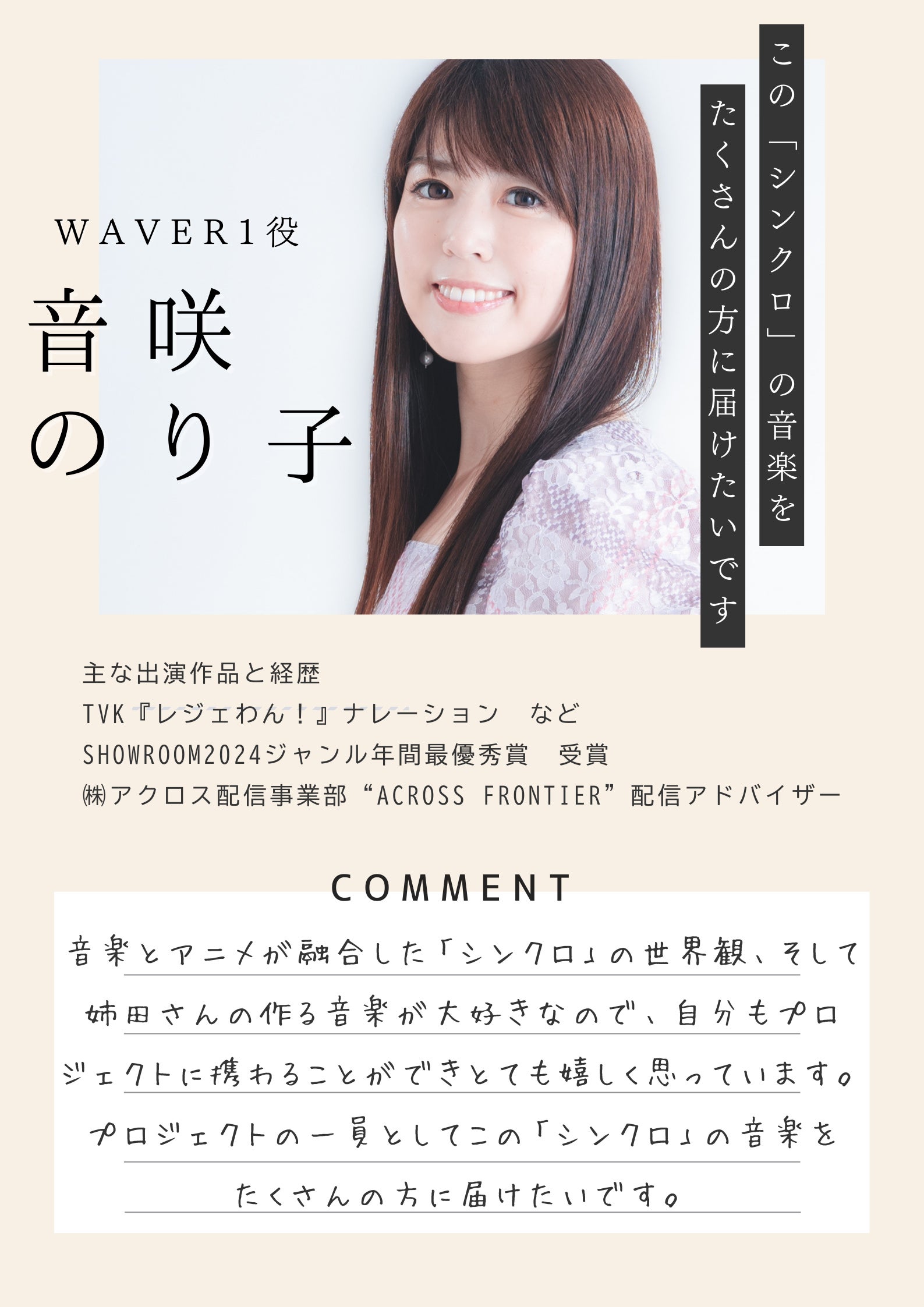 音楽ファン、アニメーションファン、声優ファン、Vtuberファンの皆様に、心から楽しんでいただけるよう関係者一同で全力を尽くします。どうか多くの方に、私たちとこのプロジェクトにシンクロしていただけますように!