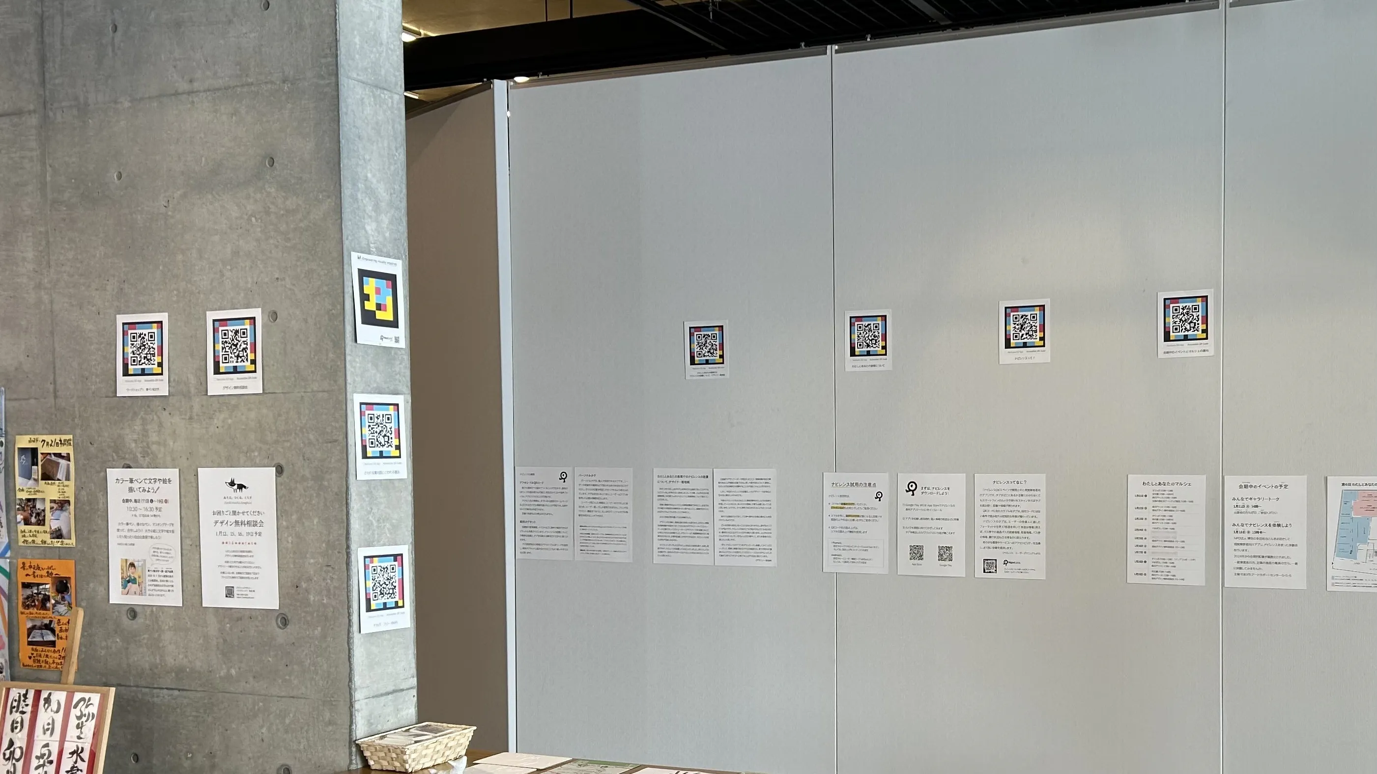 今回は社会実験として、会場を山形美術館さんにお願いしました。主に美術館の一階フロアに30コードを6ヶ月間掲示する予定です。