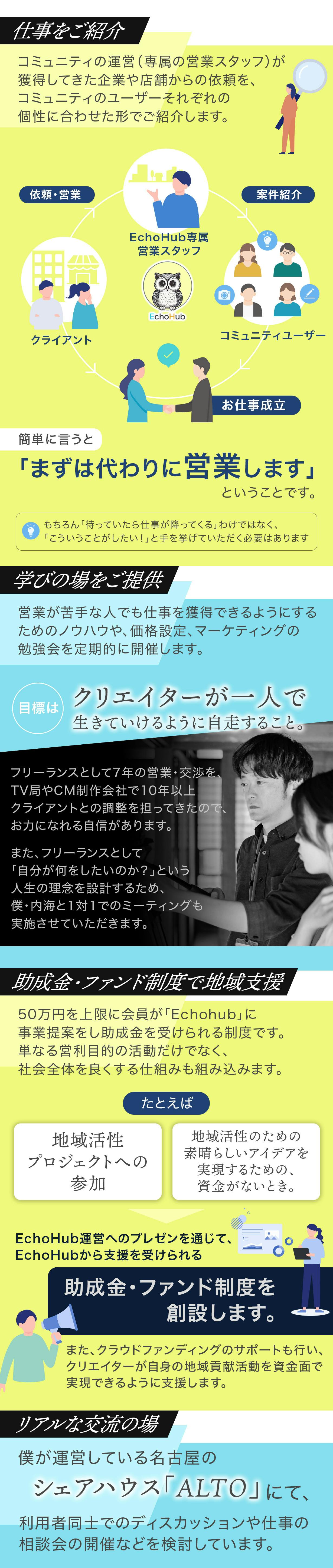 そして、あなたのクリエイターとしてのスキルを、あなたの代わりに営業する「仕事の生まれる」コミュニティです。