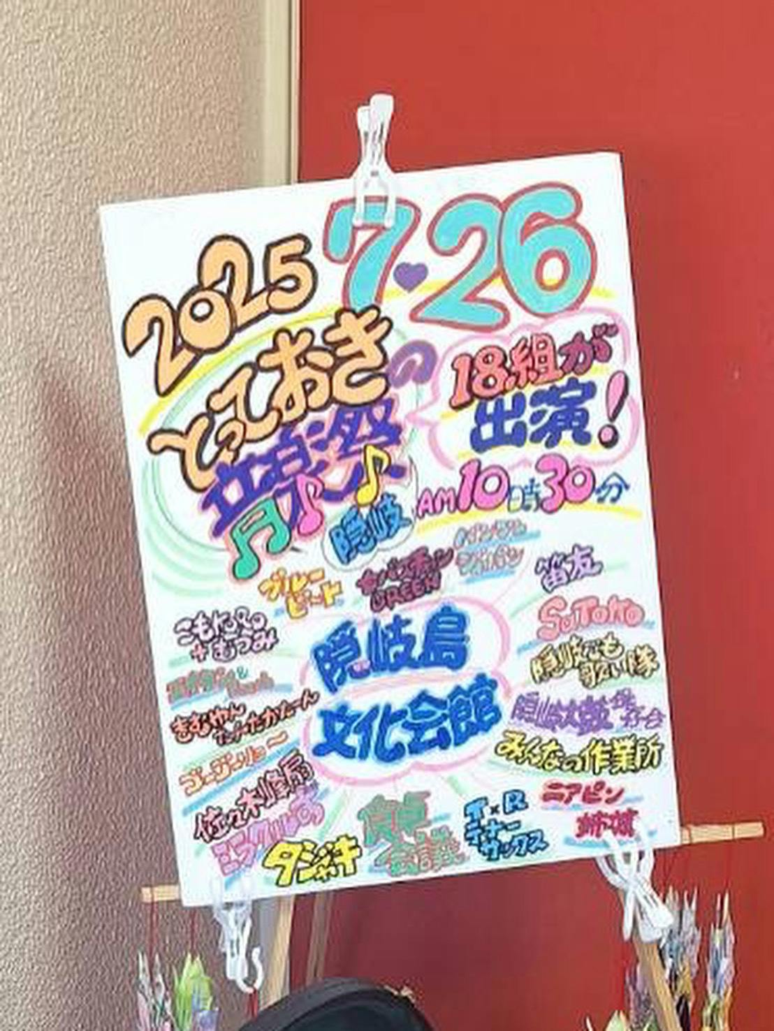 まずは第一歩である今回の第1回を成功させて、毎年開催する隠岐島の誇る『とっておきの音楽祭』に成長させていきたいと思っています。