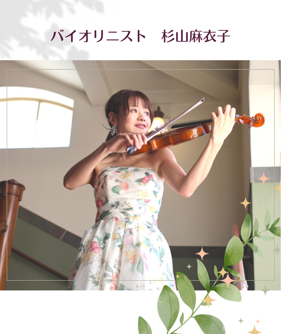 杉山麻衣子のパフォーマンスは、ただ“聴く”だけにとどまらず、心が踊り、幸せに満たされる——そんな特別な時間をお届けします。自由自在に奏でられるバイオリンは、クラシックの枠を超えて、圧倒的な音の美しさとエネルギーで会場を包み込みます。