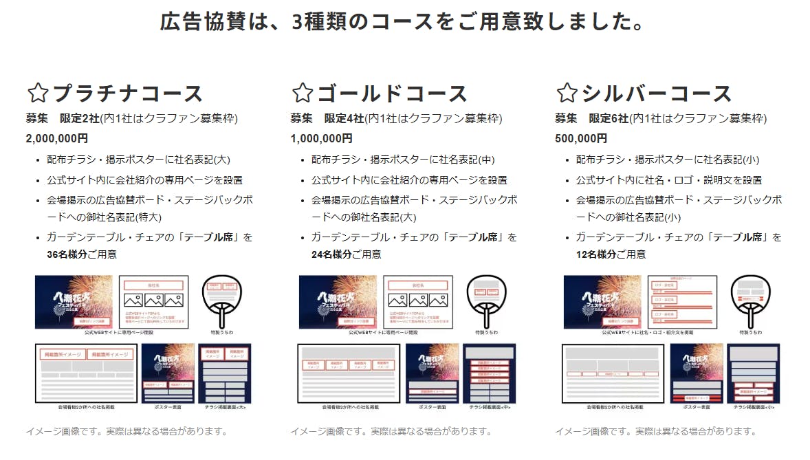 なお、プラチナ広告協賛・ゴールド広告協賛のクラウドファンディング以外の通常枠は、すでに満枠となっております。現在お申し込みいただけるのは、クラウドファンディング内でのご協賛枠のみとなります。