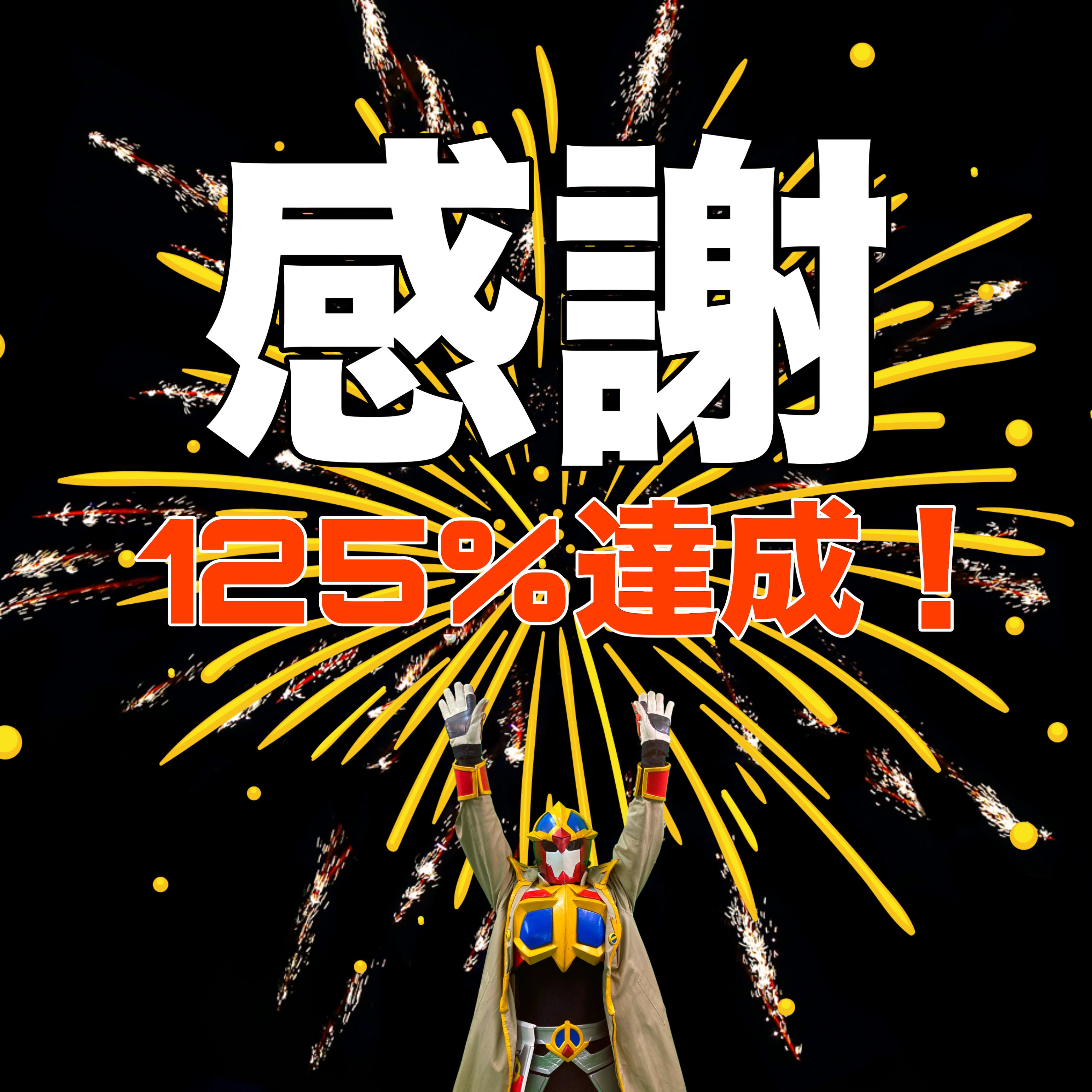 このたびは、ブローノヴァアーマー修繕クラウドファンディングに多大なるご支援をいただき、“セカンドゴールの達成(120%)を越え、最終的に125%”という想像を超える結果を迎えることができました。これもひとえに、日頃より応援してくださる皆さま、そしてこのクラウドファンディングを通じて新たに出会えた皆さまのお力添えのおかげです。改めて、心より御礼申し上げます。ご支援いただいた資金は、アーマー修繕、ロングコートのフルオーダー製作をはじめ、今後の活動に責任をもって大切に使用させていただきます。この挑戦を通じて得た繋がりや気づきを胸に、ブローノヴァはこれからも「元気と笑顔を届けるヒーロー」として、地域や施設、全国各地で活動を広げてまいります。今後の展開も、ぜひご期待いただければ幸いです。本当にありがとうございました!