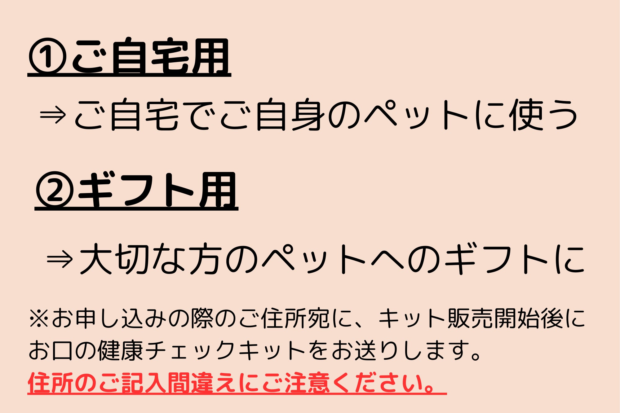 1.ペットのお口の健康チェックキットの販売元である当社は、セルフチェックキット申込の際に取得した個人情報を各種のご案内(キット発送等)のために利用します。