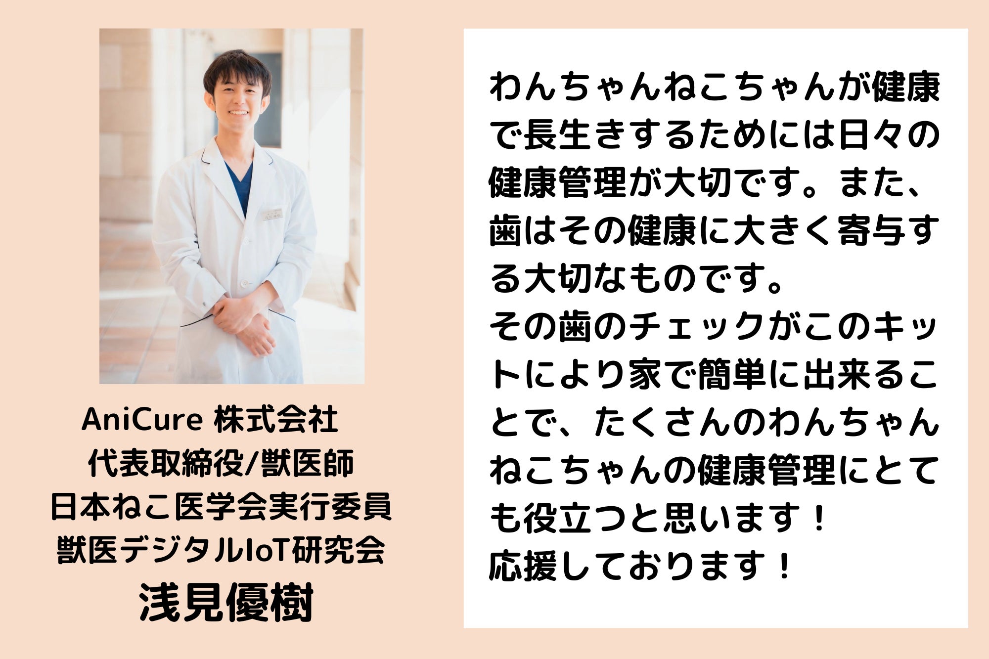 ペットの体調管理にとても大切である、お口の健康チェックキットを開発するためのご支援をお願いしております。