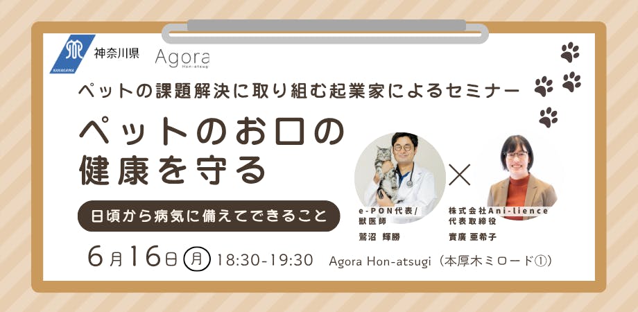 下記の日程で、神奈川県の起業家であり、獣医師でもある神奈川県起業家&獣医師の鷲沼さんとともにペットのデンタルケアセミナーを行います!