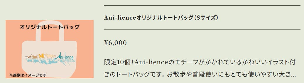 Ani-lienceのロゴデザインとわんちゃん、ねこちゃんをデザインしたトートバックをご提供します。