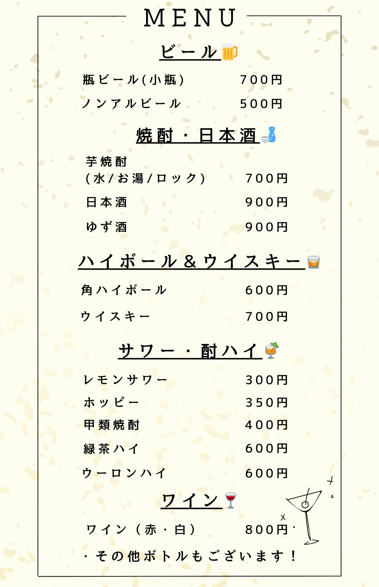 (おつまみのメニューは今後作成予定です!)